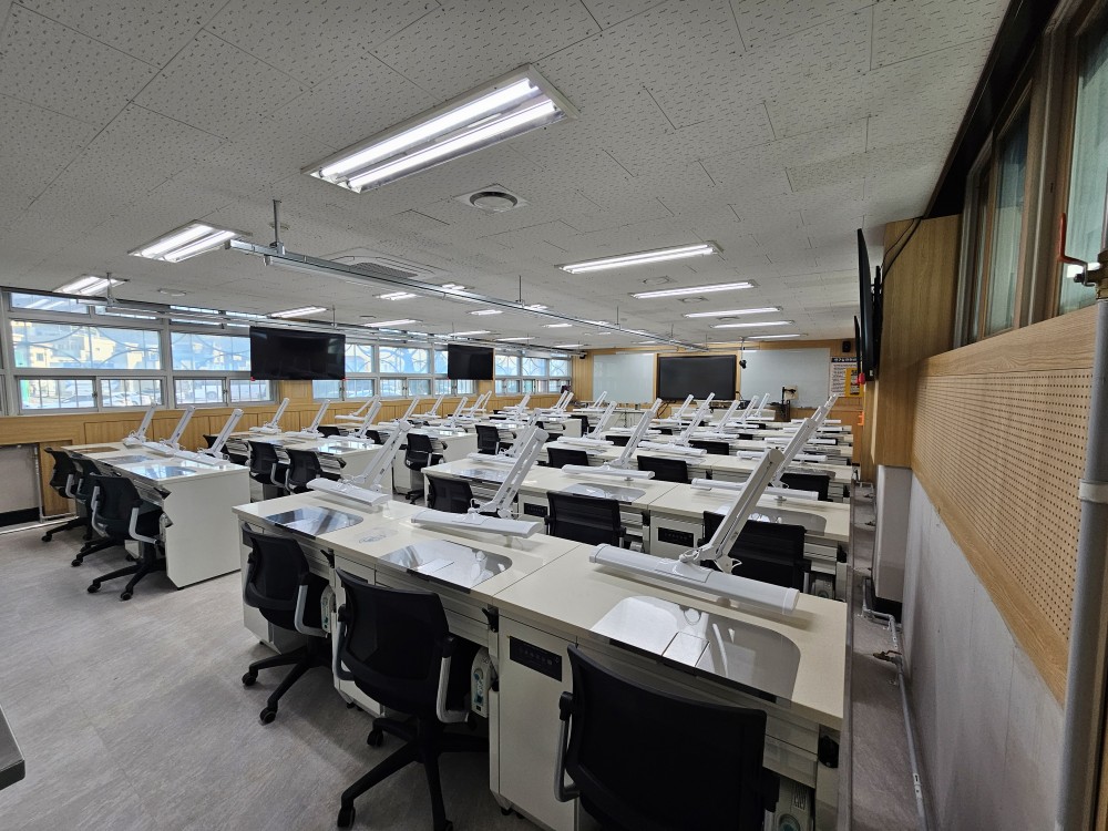 치아형태실습 및 기초치과기공학 및 실습 수업이 진행되는 기초치기공실습실입니다.