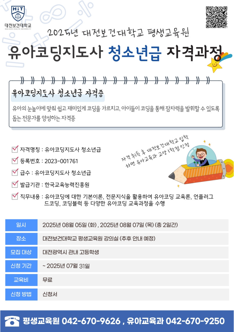 | 2025학년도 유아코딩지도사 청소년급 자격과정신청 안내 | ||
