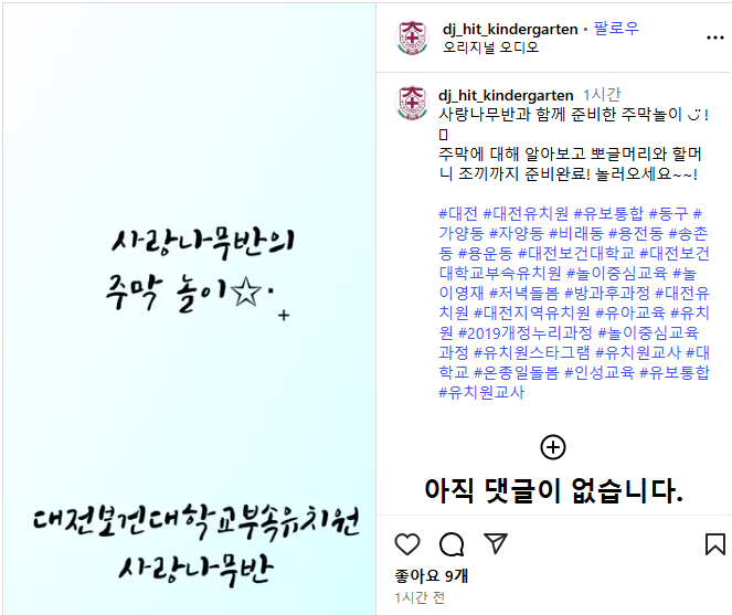 대전보건대학교 부속유치원 인스타그램 아이디: @dj_hit_kindergarten