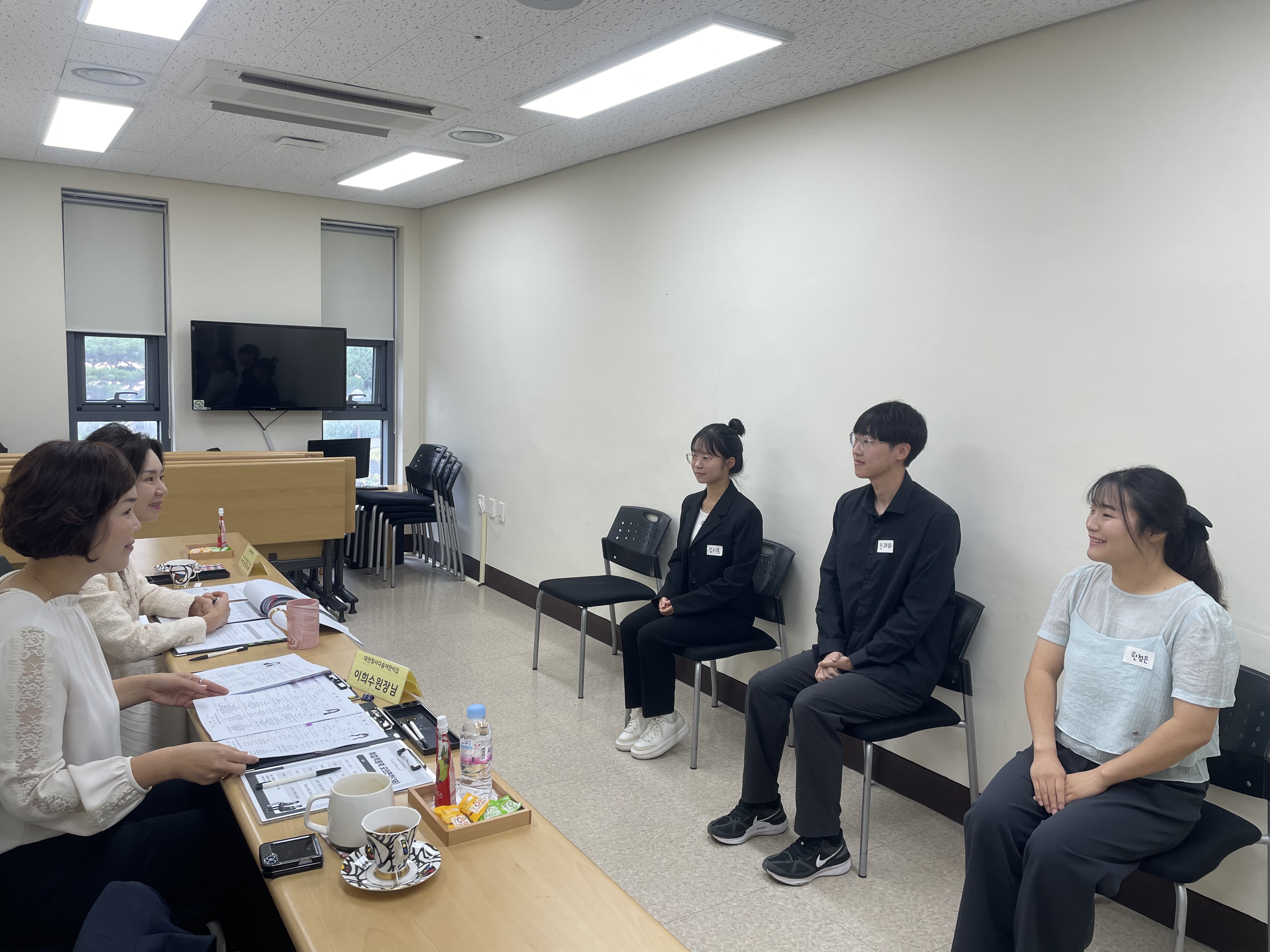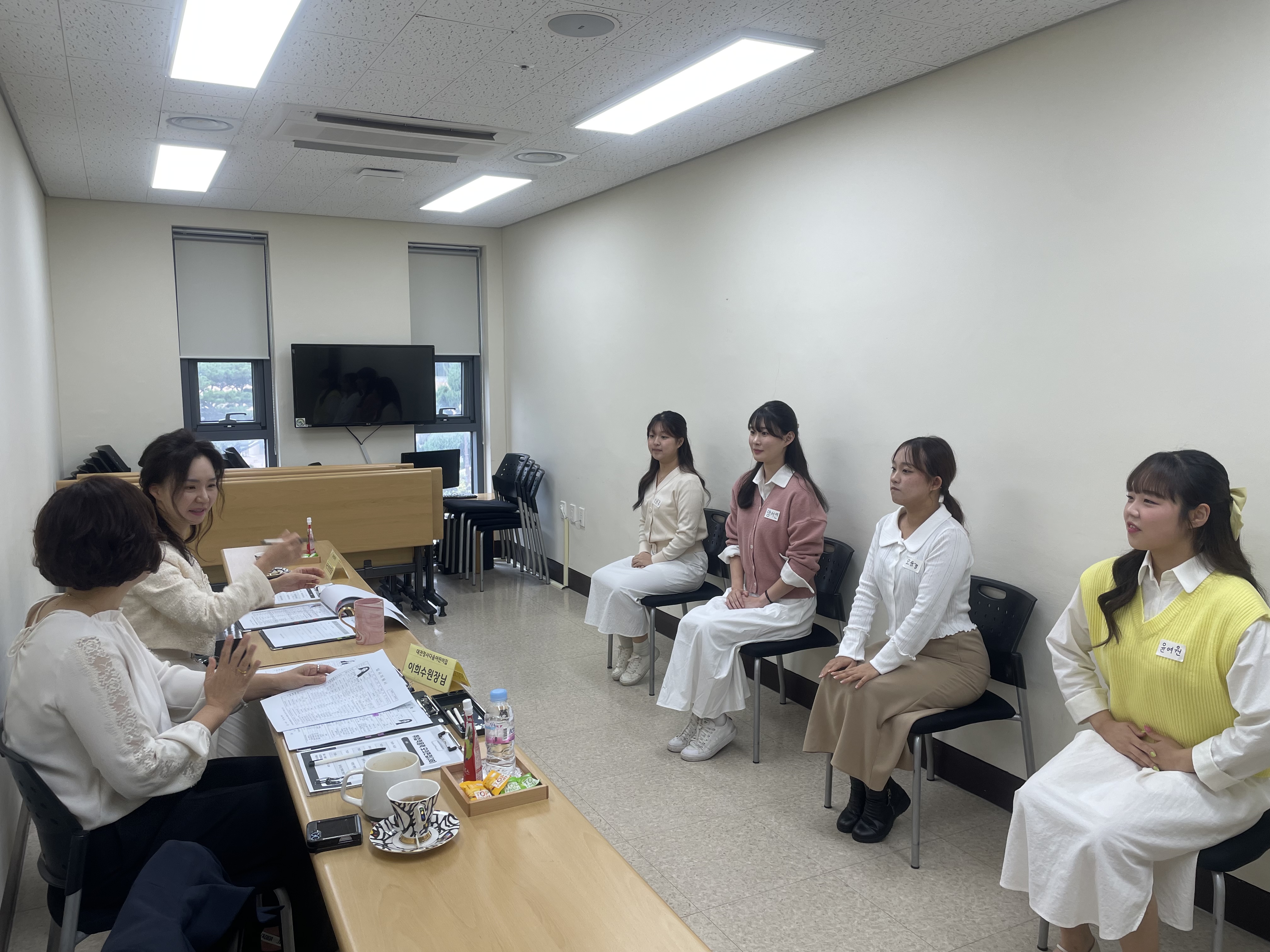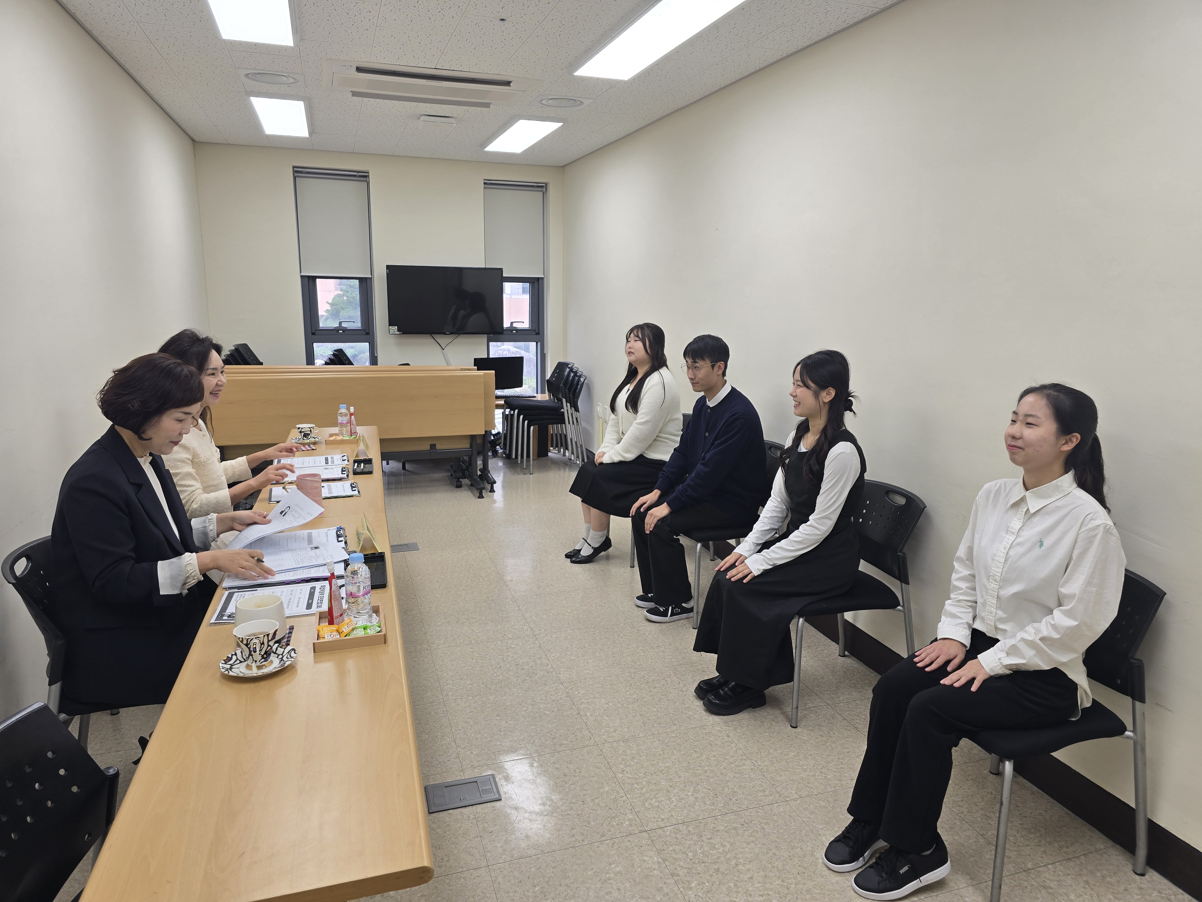 학생들은 사전에 이력서와 자기소개서를 준비하고, 면접장 분위기와 동일하게 세팅된 공간에서