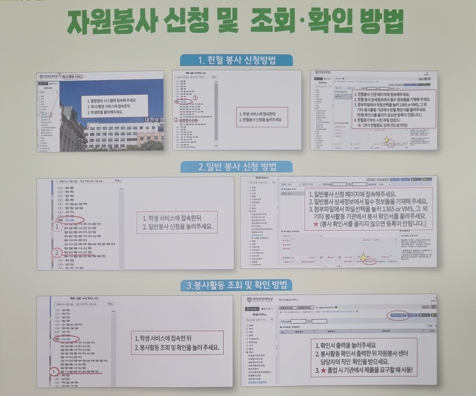 2. 수업 시간과 겹치는 봉사활동은 인정되지 않습니다.