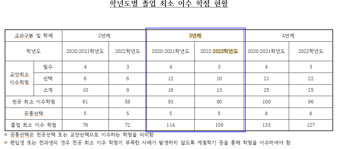 | ⭐ 학년도별 졸업 최소 이수 학점 안내 ⭐ | ||