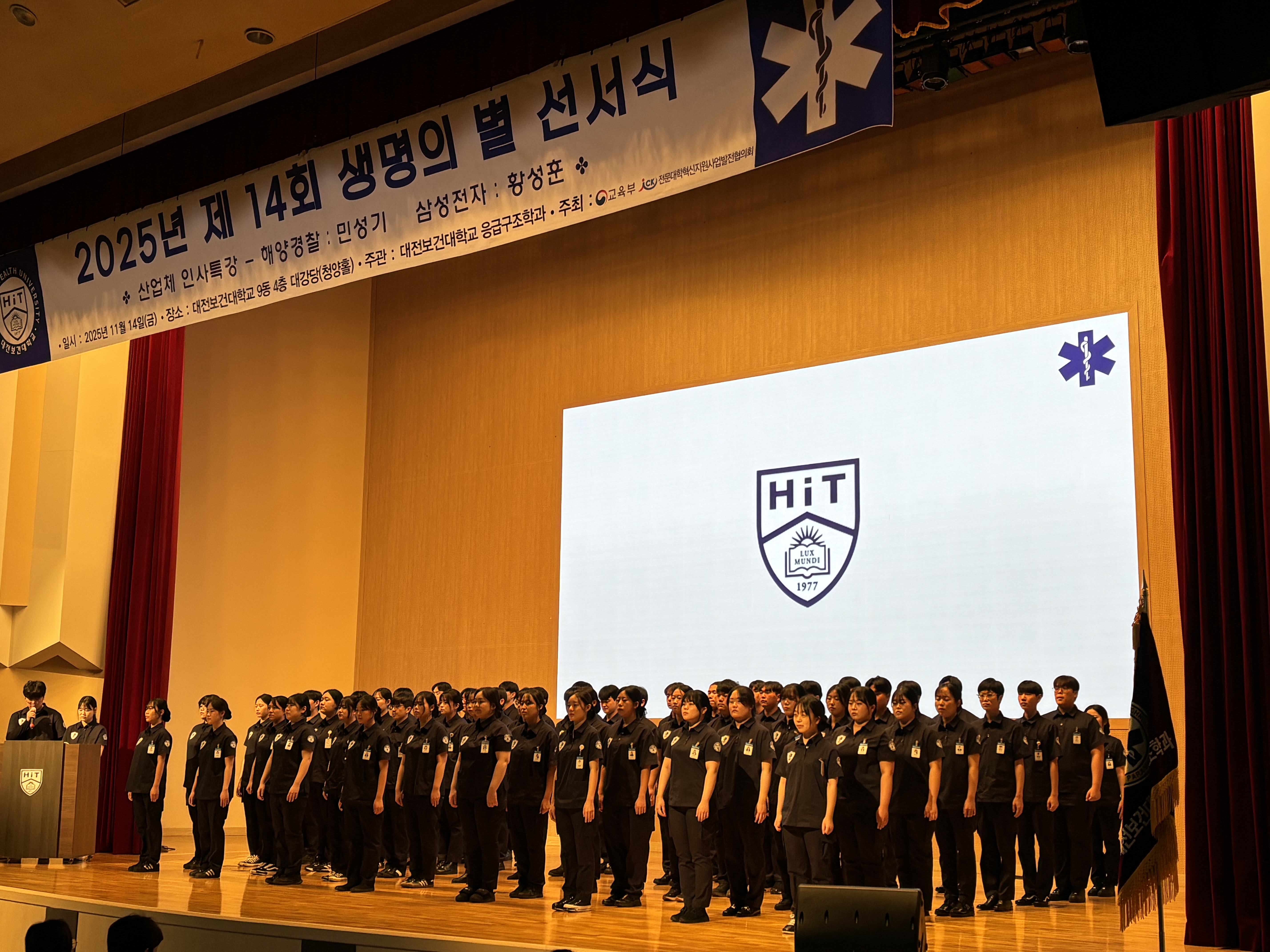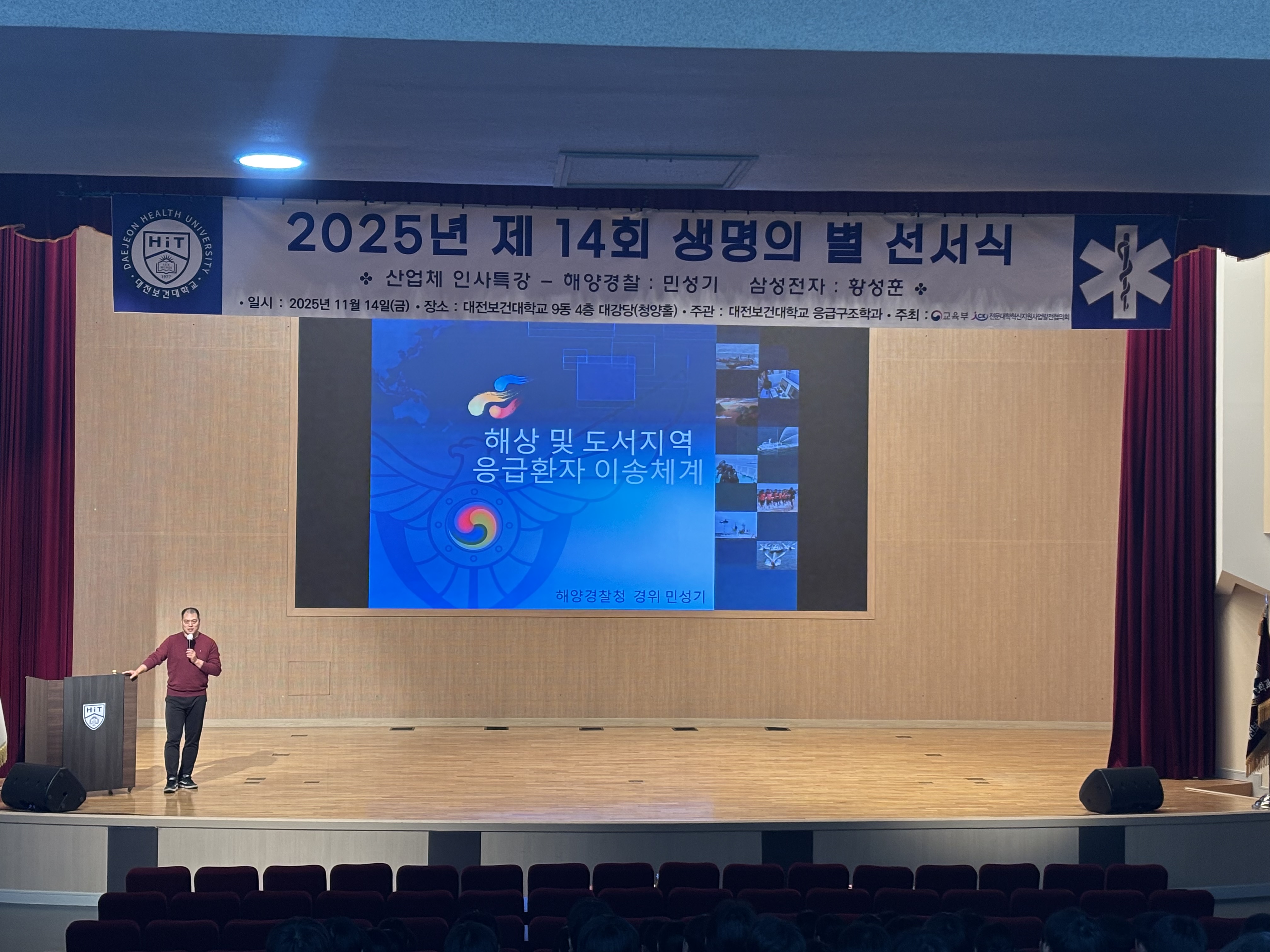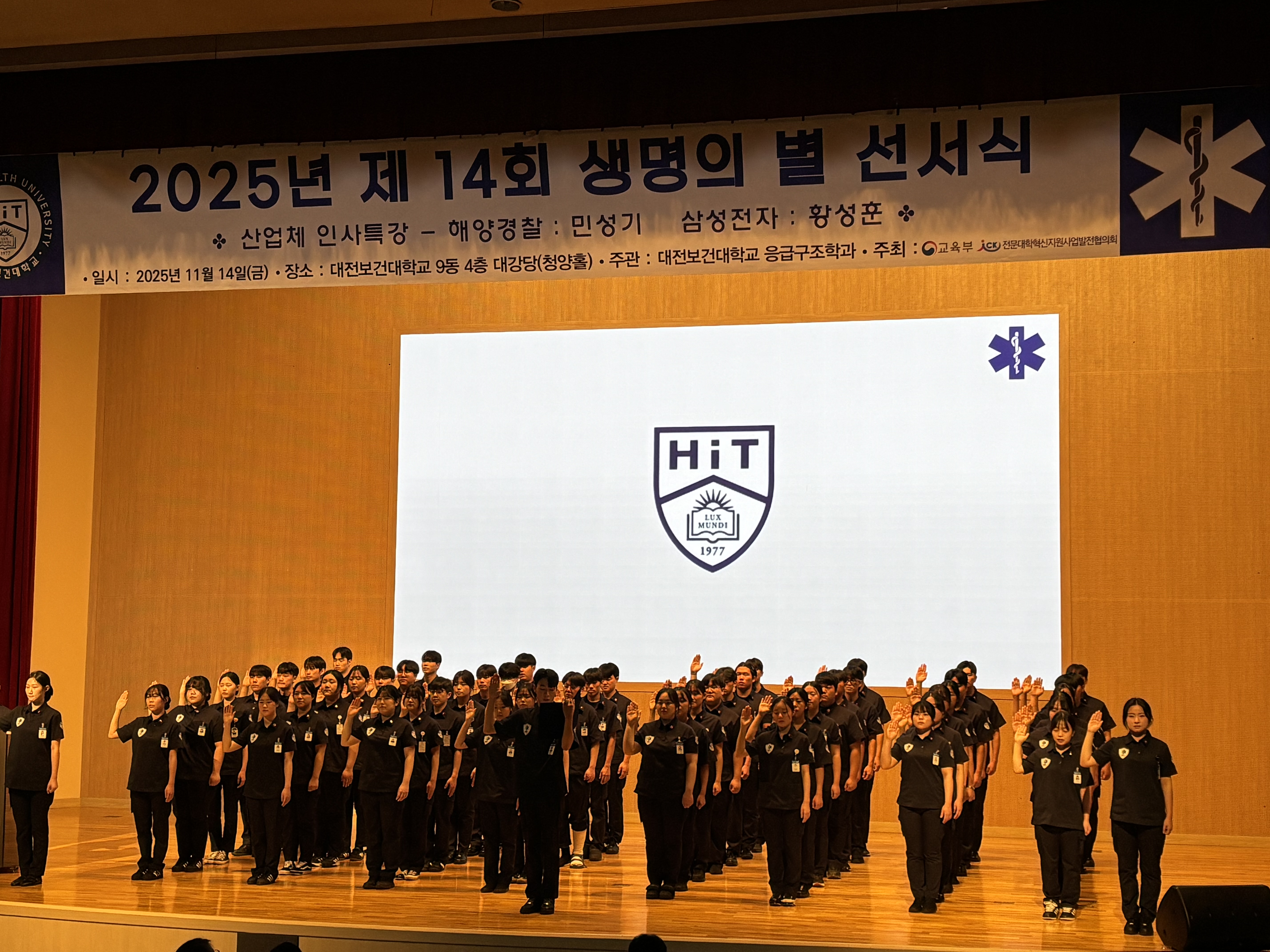 2025년 11월 14일 금요일 응급구조학과 2학년 재학생을 대상으로 '생명의 별 선서식' 및 응급구조학과 재학생을 대상으로 해양경찰, 삼성전자 소방대 소속 선배님들의 특강을 진행하였습니다. 행사에 참여주신 교수님들, 강사님들 학과 학생분들께 진심으로 감사드립니다.