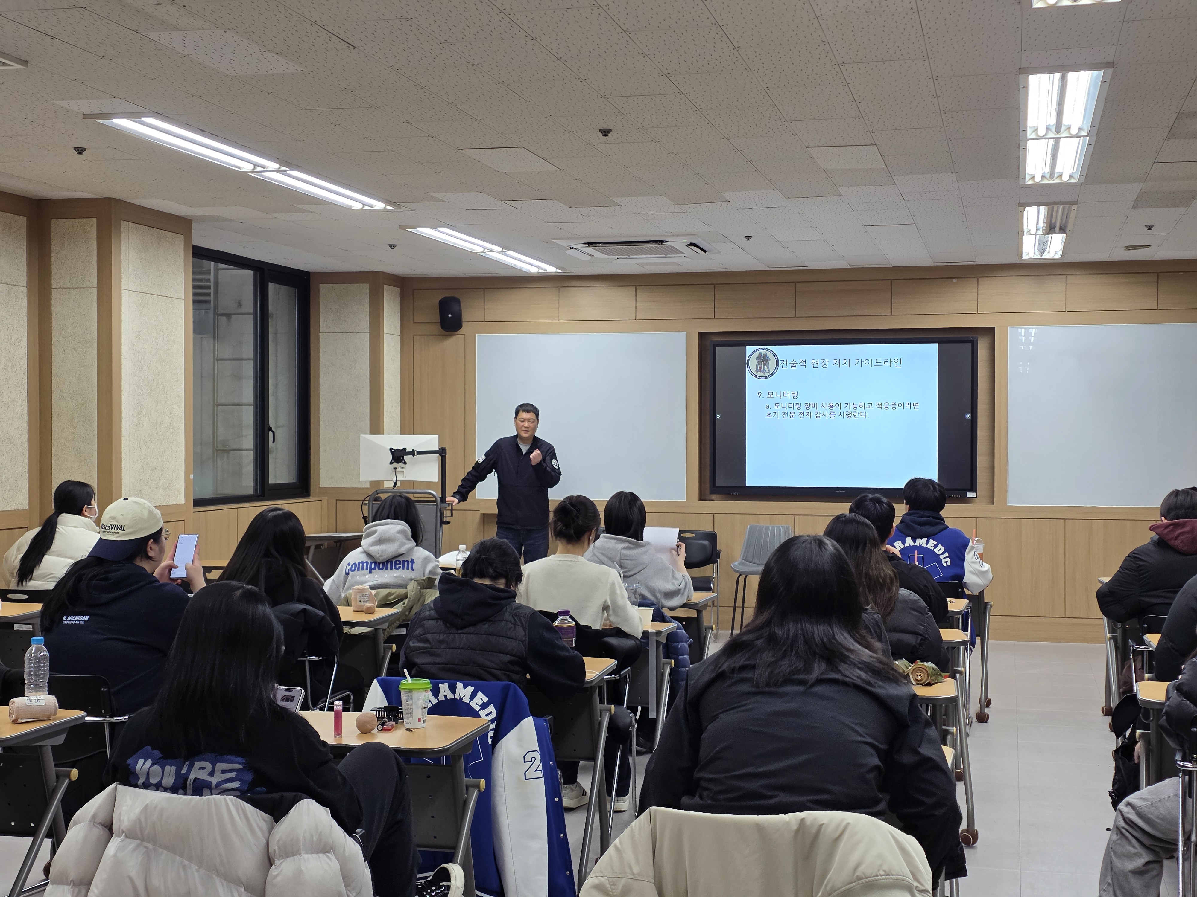 2025년 12월 13일 ~14일 이틀간 응급구조학과 2학년 재학생을 대상으로 TCCC-CMC 프로그램을 진행하였습니다.