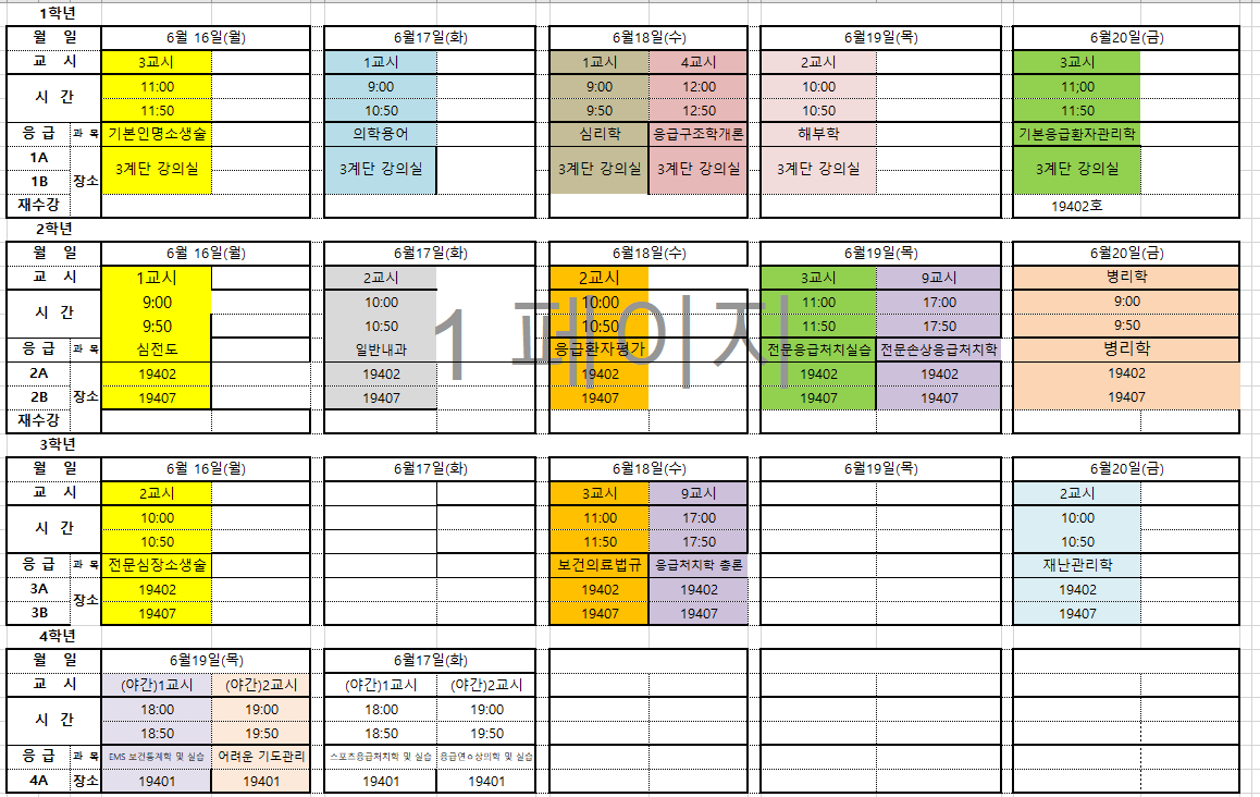 2025학년도 1학기 기말고사 시험 시간표를 공지해드립니다.