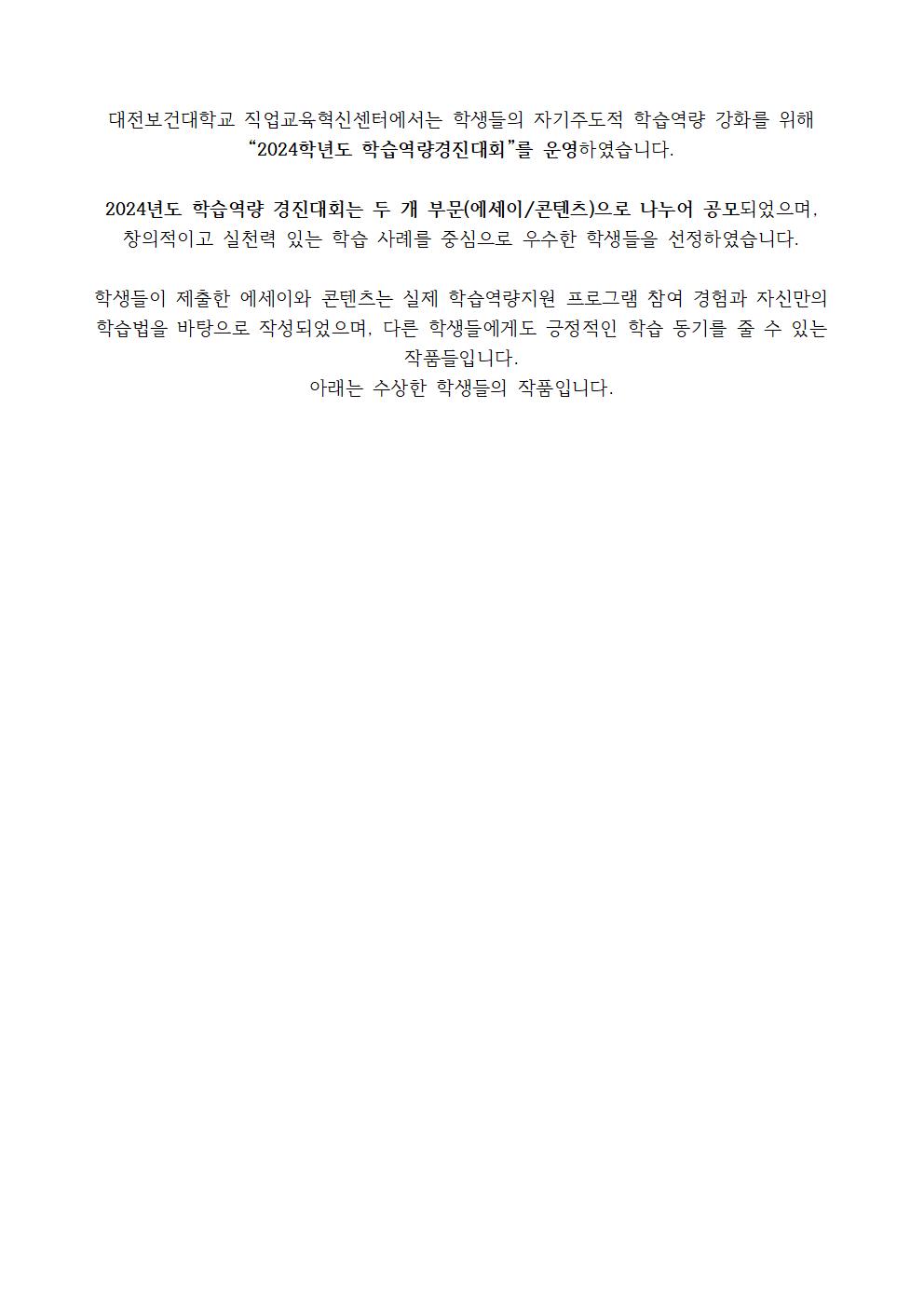 | 2024년도 학습역량경진대회 수상작(에세이/콘텐츠) 소개 | ||