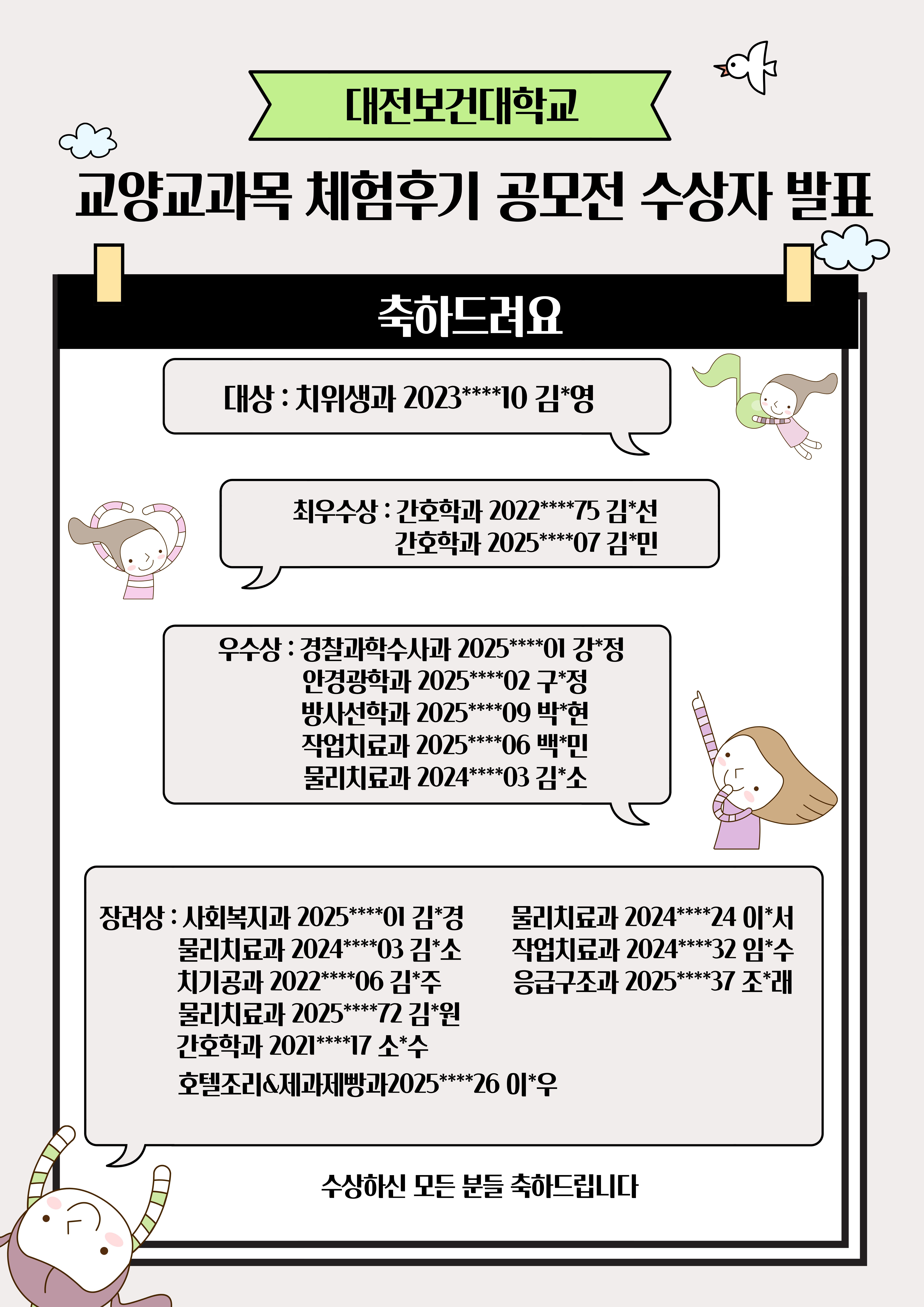 수상하신 모든 학생분들 축하드리며, 참여해 주신 모든 학생분들에게도 감사드립니다.
