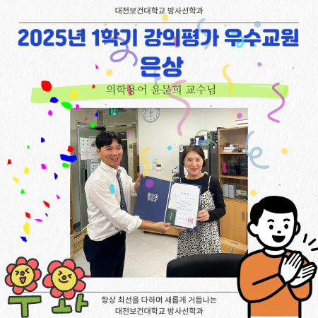 대전보건대학교(방사선학과)는 2025학년도 강의평가우수자 시상에서 은상을