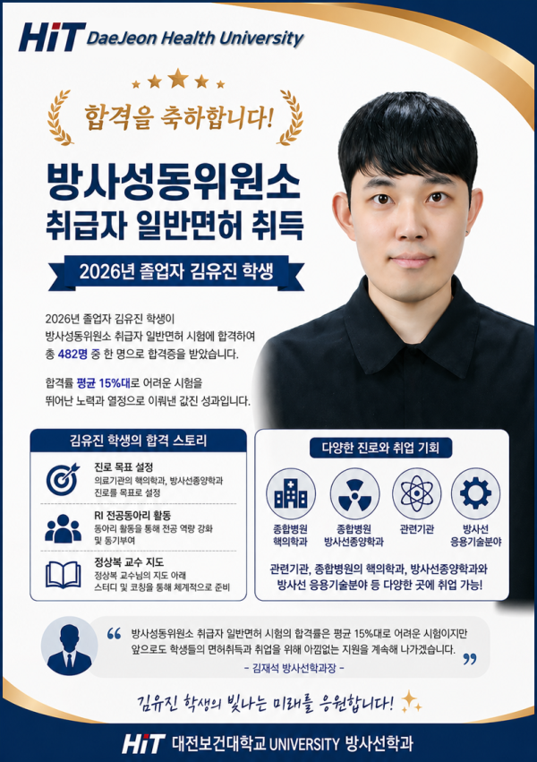 대전보건대학교 방사선학과 김유진 졸업생, 방사성동위원소 취급자 일반면허 취득