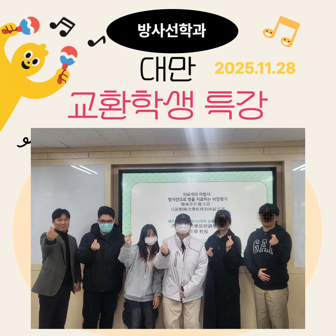 2025년 11월, 대만에서 온 교환학생들이 대전보건대학교 방사선학과를 방문하여 한 달간의 전공수업 및 실습 프로그램에 참여했다. 이번 교환학생단은 3학년 1명, 5학년 2명으로 구성되어 있으며, 대만 특유의 교육체계에 따라 고등학교 과정부터 방사선학 전공이 시작되는 학제를 갖고 있다.