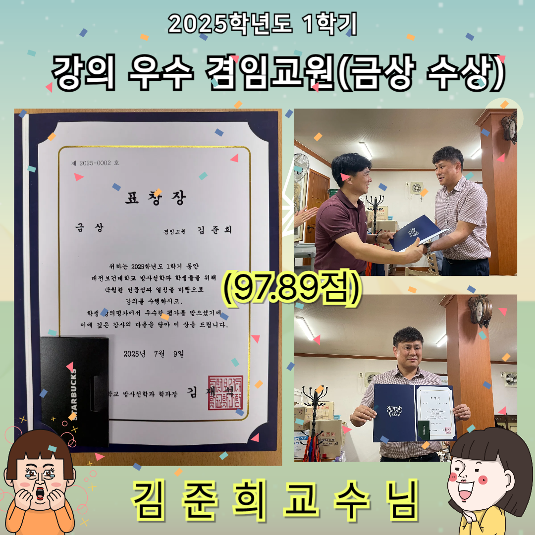 | 2025 대전보건대학교 방사선학과 1학기 겸임교원 강의평가 우수 표창 | ||