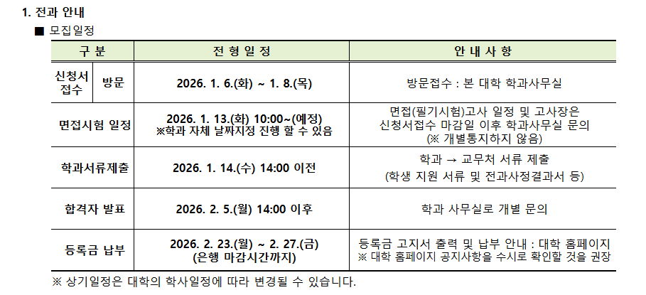 | 2026학년도 1학기 전과·재입학·자진유급 일정 안내 | ||