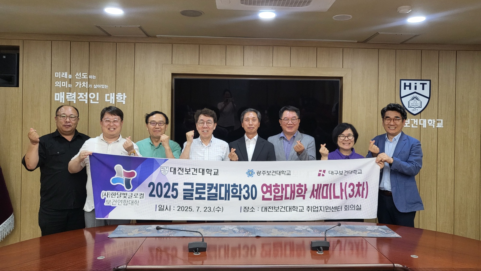 대전보건대학교는 7월 23일(수), 본교 8동 8415호 회의실에서 2025년도 순환교육 운영 계획 수립을 위한 글로컬대학30 연합대학 3차 세미나를 개최했다. 이번 세미나는 (사)한달빛글로컬보건연합대학이 함께 운영중인 순환교육의 내실화와 연합대학 간 협업체계 강화를 목적으로 마련되었다.