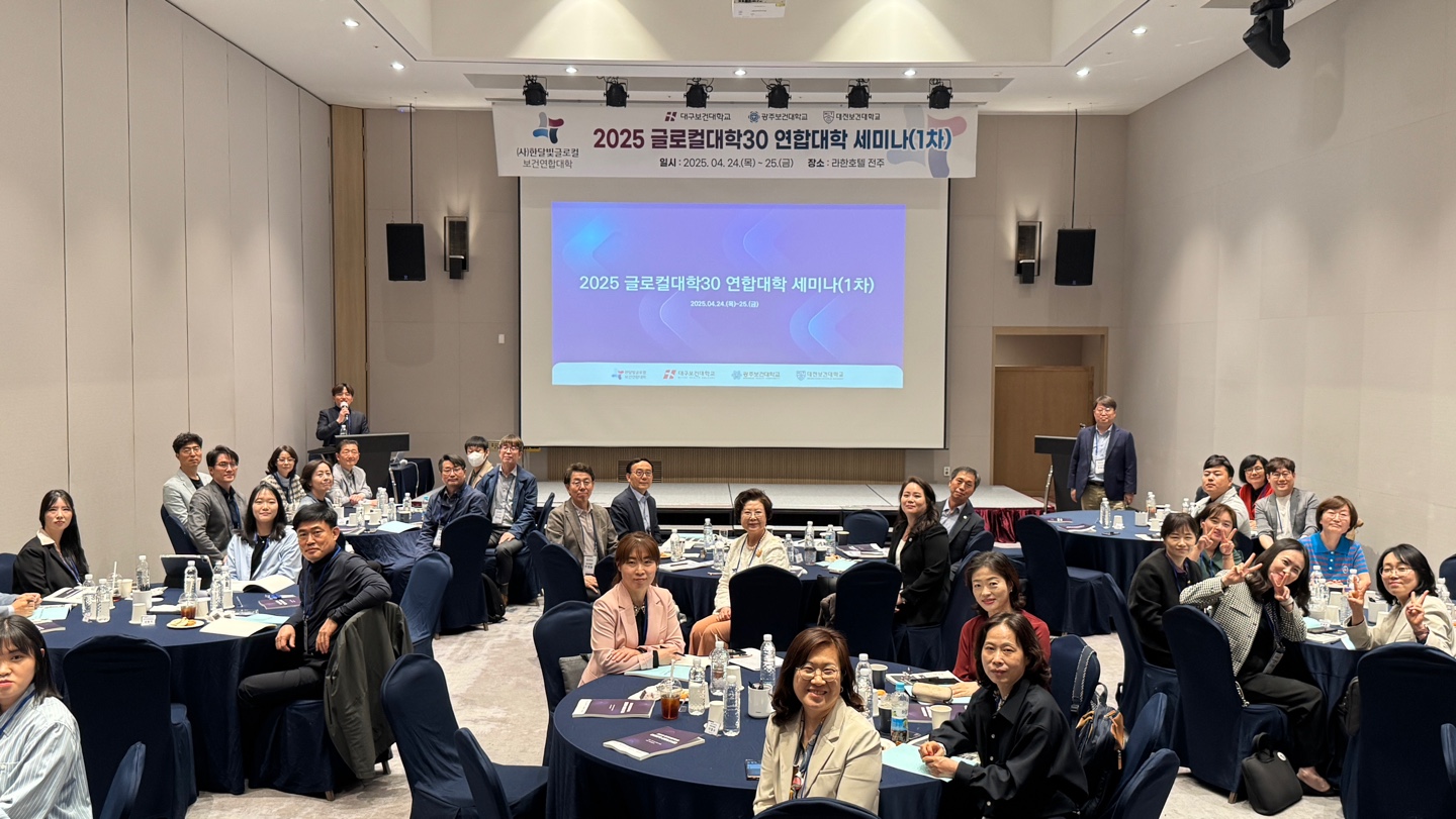 대전보건대학교(총장 이정화)는 지난 24일부터 25일까지 전주 라한호텔에서 글로컬보건연합대학 소속 3개 대학이 참여한 가운데, 글로컬대학30 프로젝트 1차년도 사업에 대한 개선사항 도출과 2025년도 사업 운영 계획 수립을 위한 세미나를 개최했다고 밝혔다.