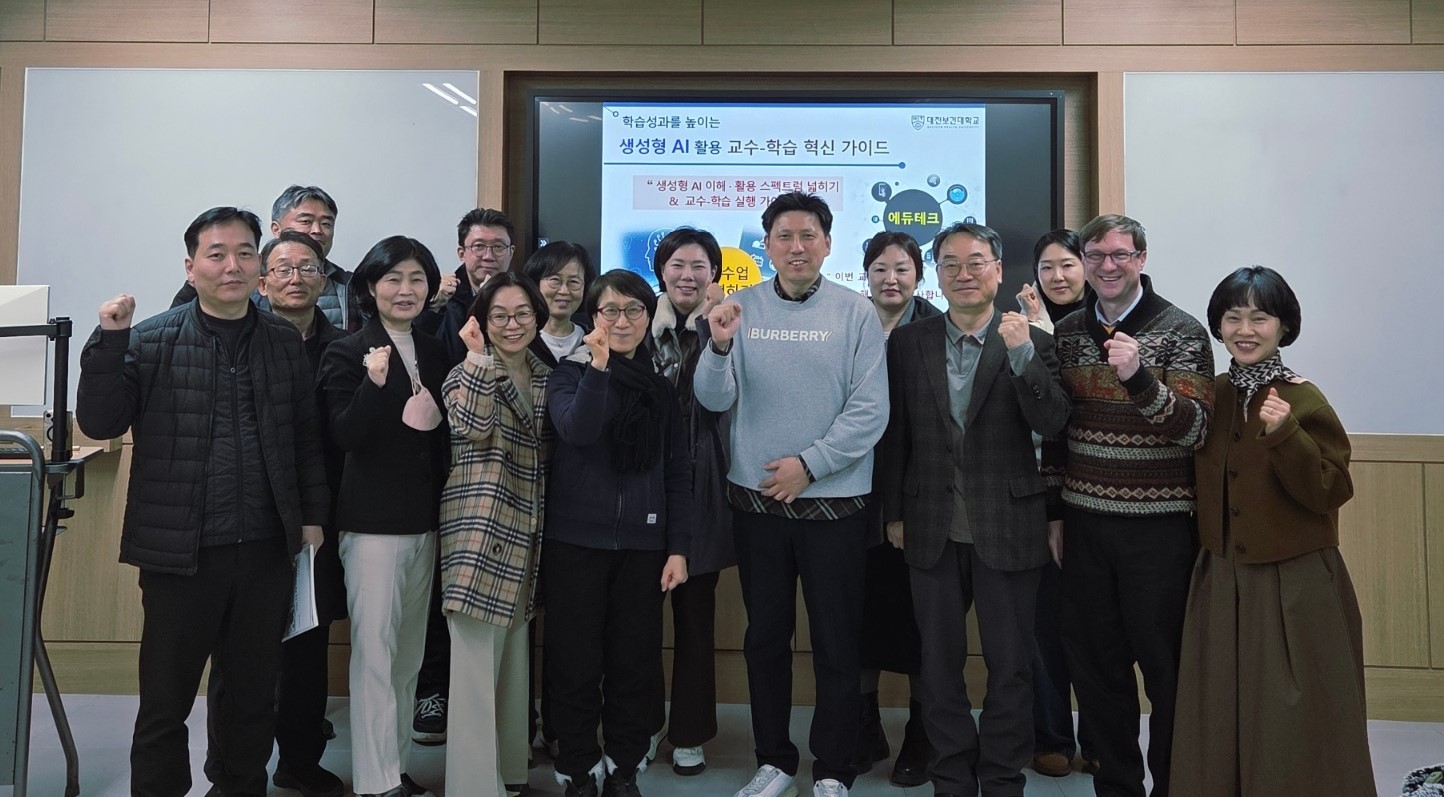 대전보건대학교(총장 이정화)는 지난 02월 04일(수요일) 본교 MS-2강의실에서 전임교원을 대상으로 4차 교수법특강을 개최했다고 밝혔다. 이번 행사는 ‘학습성과를 높이는 생성형 AI 활용 교수-학습 혁신 가이드’라는 주제로 교원의 AI활용 역량강화를 위해 진행되었다.