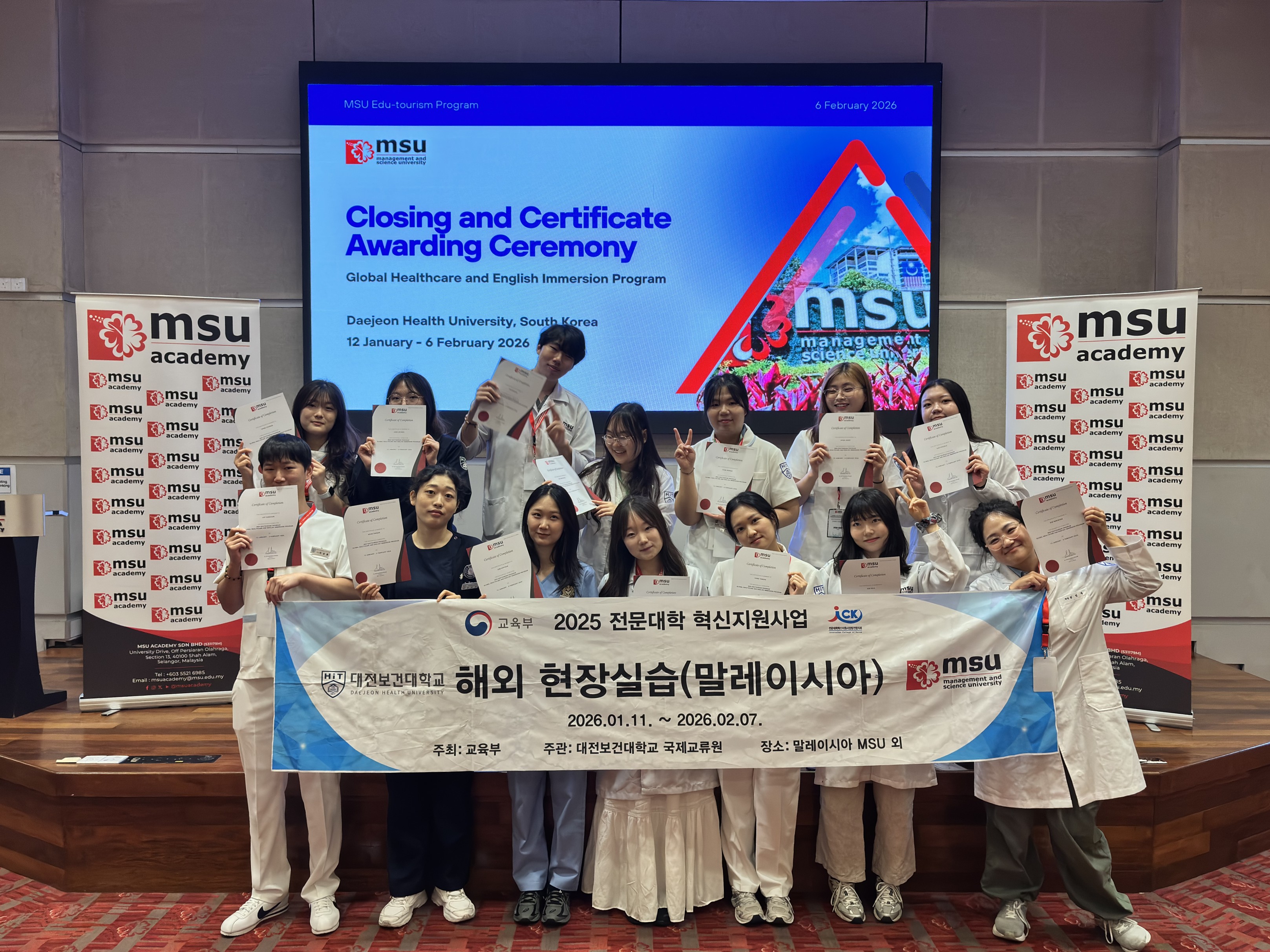 대전보건대학교(총장 이정화)는 지난 1월 11일부터 2월 7일까지 4주간 말레이시아 쿠알라룸푸르에 위치한 MSU(Management & Science University)에서 보건계열 학생들을 대상으로 전공 연계 해외현장실습 프로그램을 진행했다.
