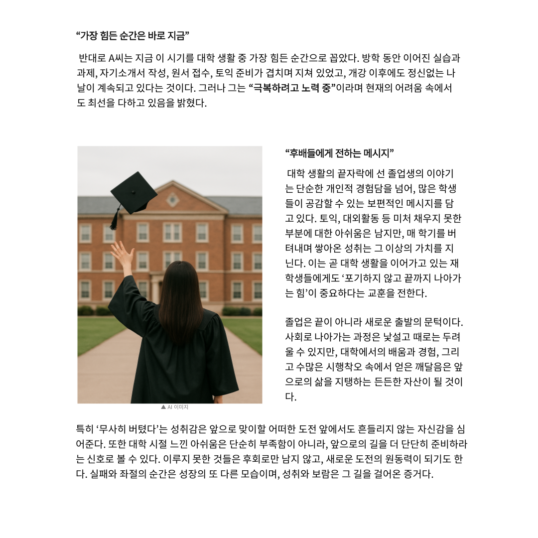 "졸업 앞둔 대학생, 남는 건 아쉬움과 뿌듯함"