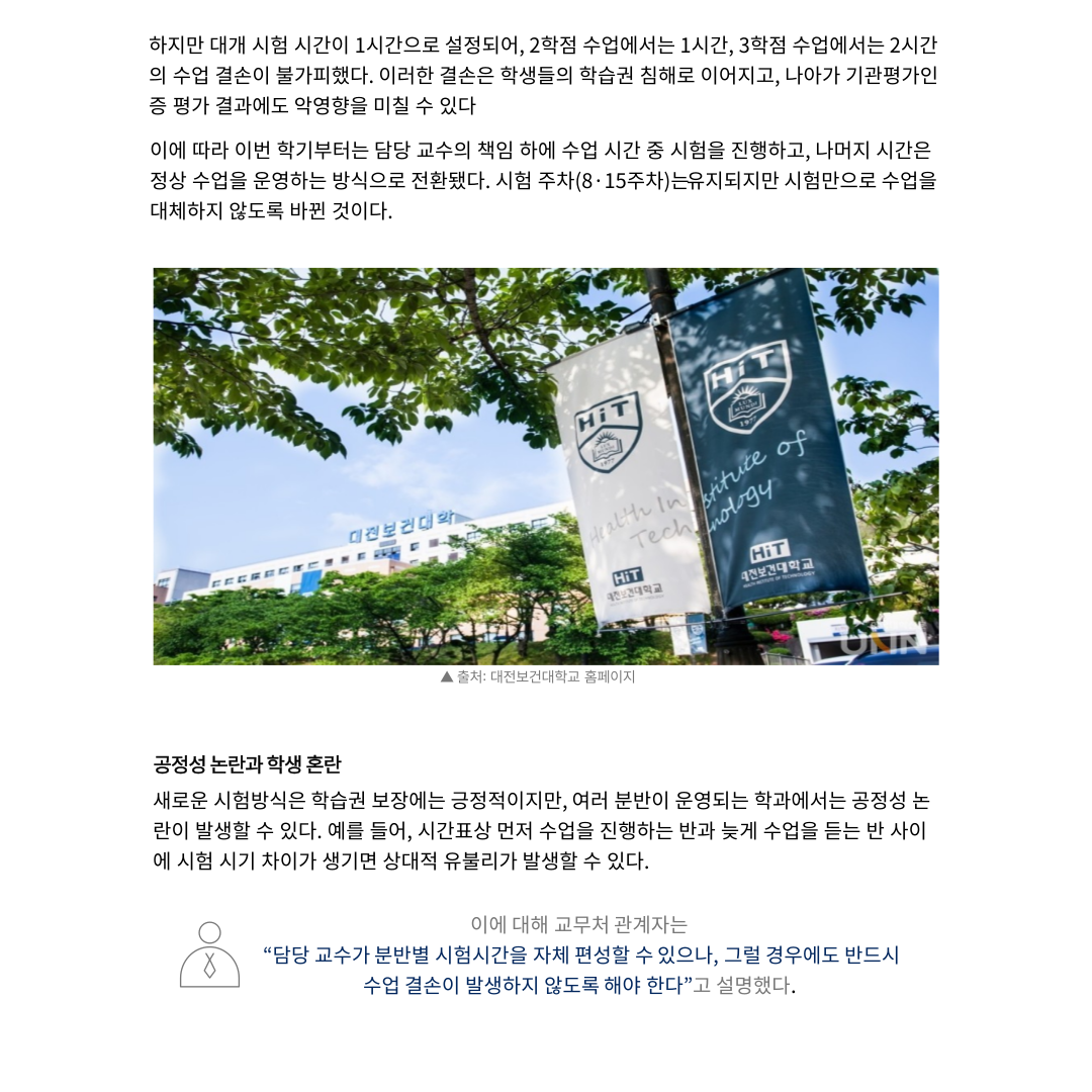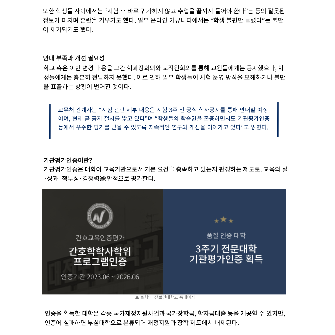 "대전보건대학교, 2학기부터 시험 운영방식 변경... 학생 혼란과 개선 필요성