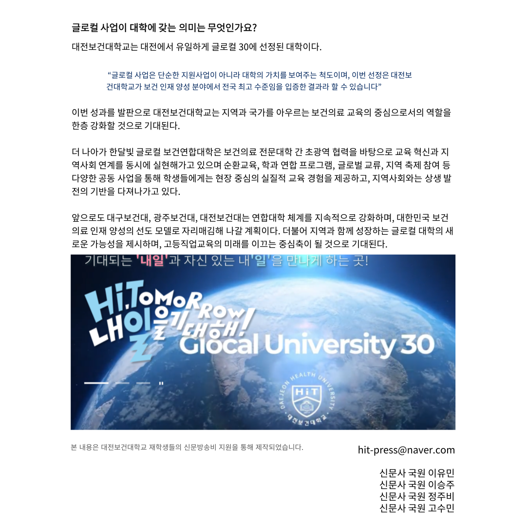 “글로컬 30, 보건 인재 양성의 새로운 길을 열다“