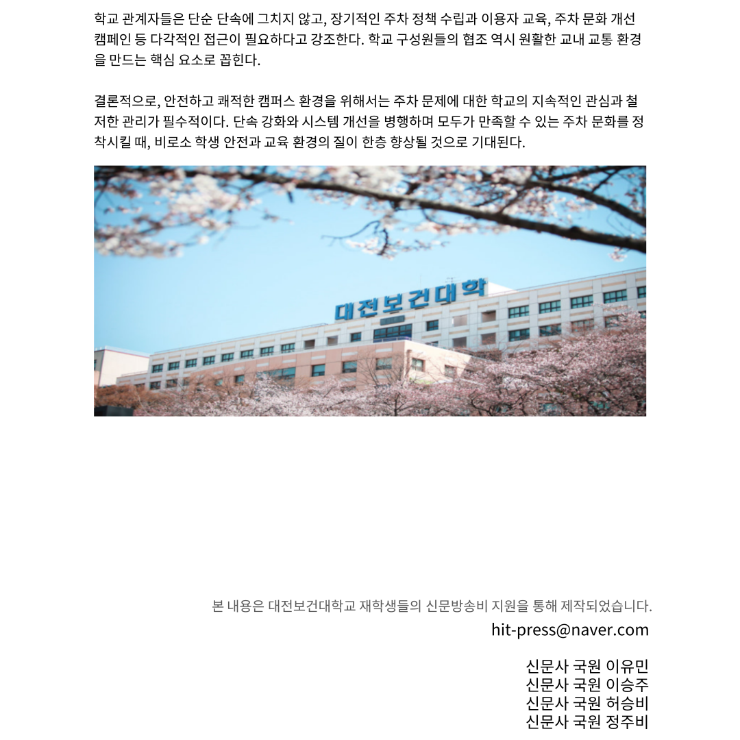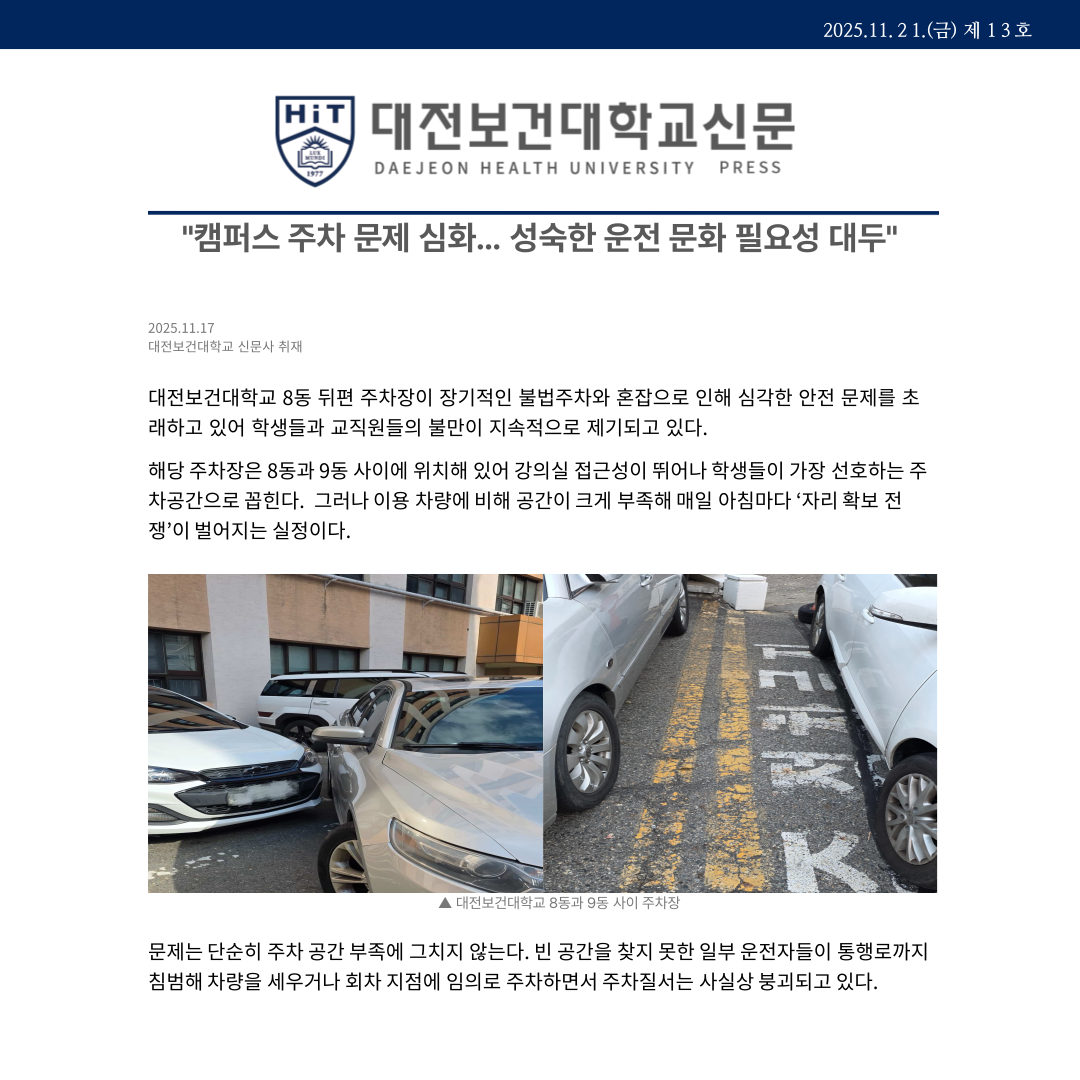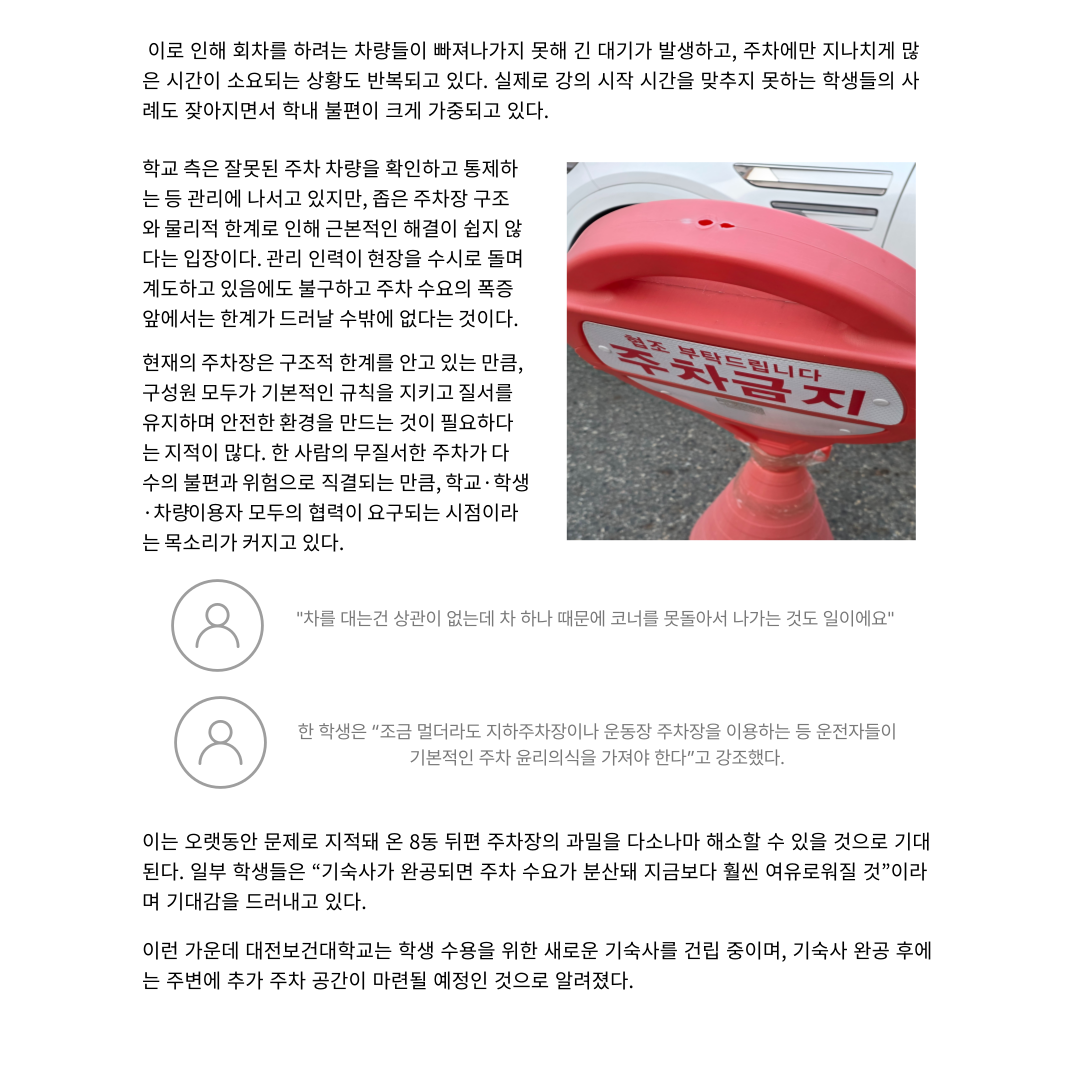 캠퍼스 주차 문제 심화… 성숙한 운전 문화 필요성 대두