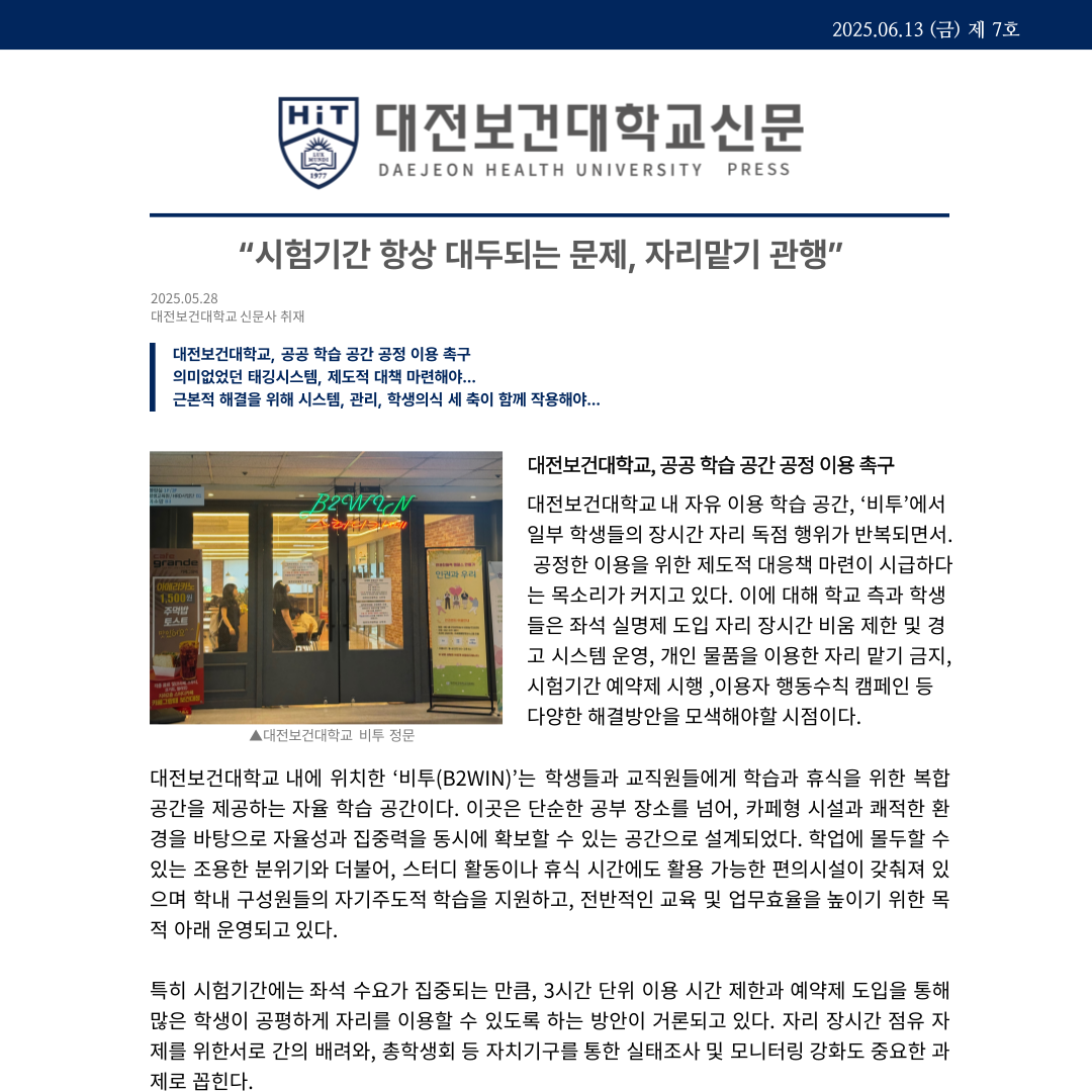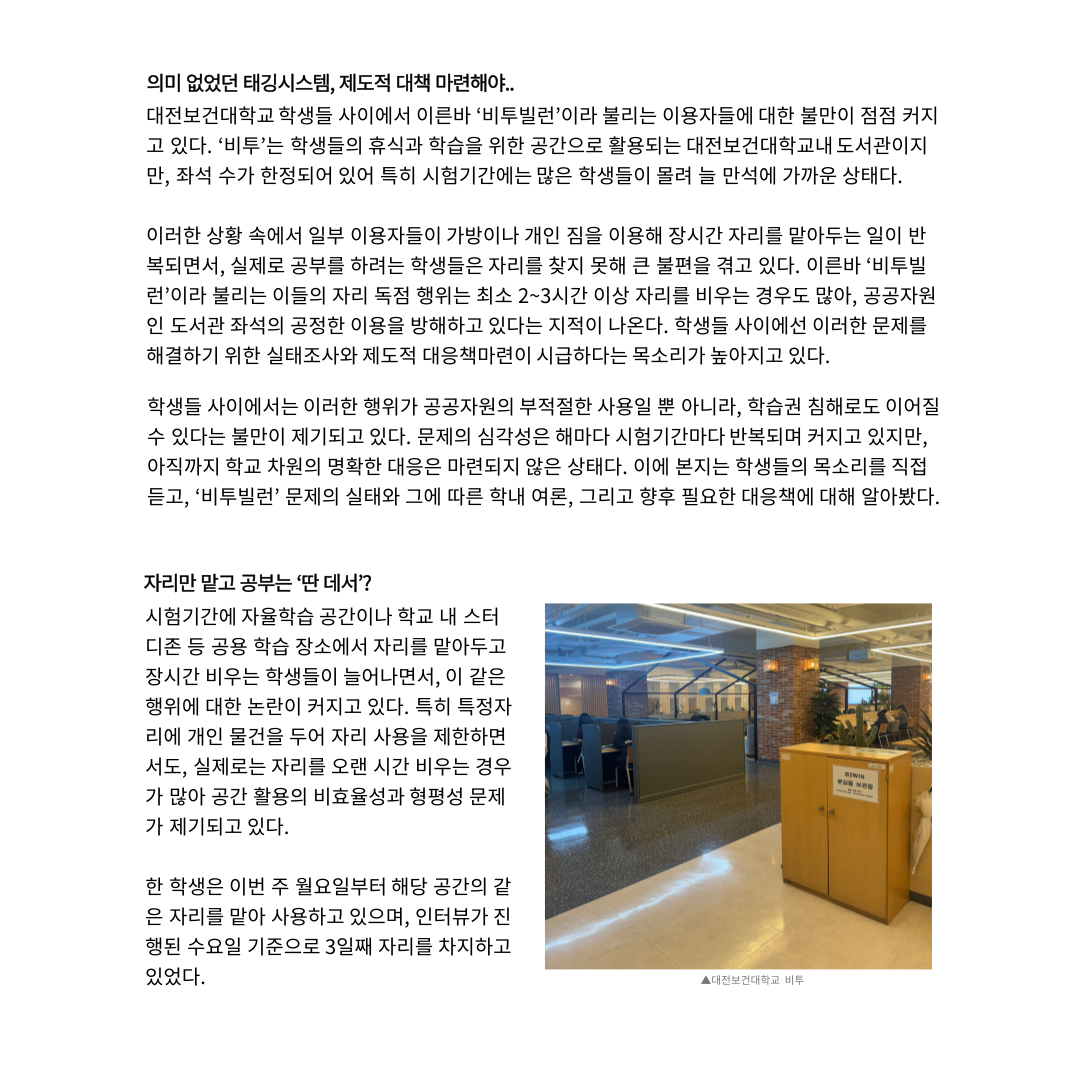 “시험기간 항상 대두되는 문제, 자리맡기 관행”