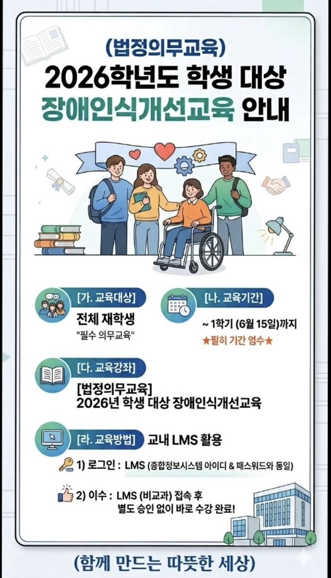 | (법정의무교육) 2026학년도 학생 대상 장애인식개선교육 안내 | ||