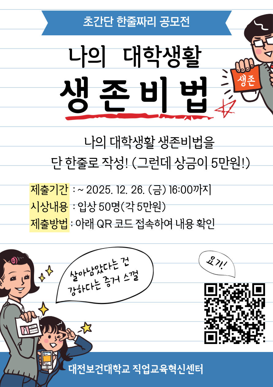 | [마감][직업교육혁신센터] 초간단 한줄쓰기 공모전! "나의 대학생활 생존비법" | ||