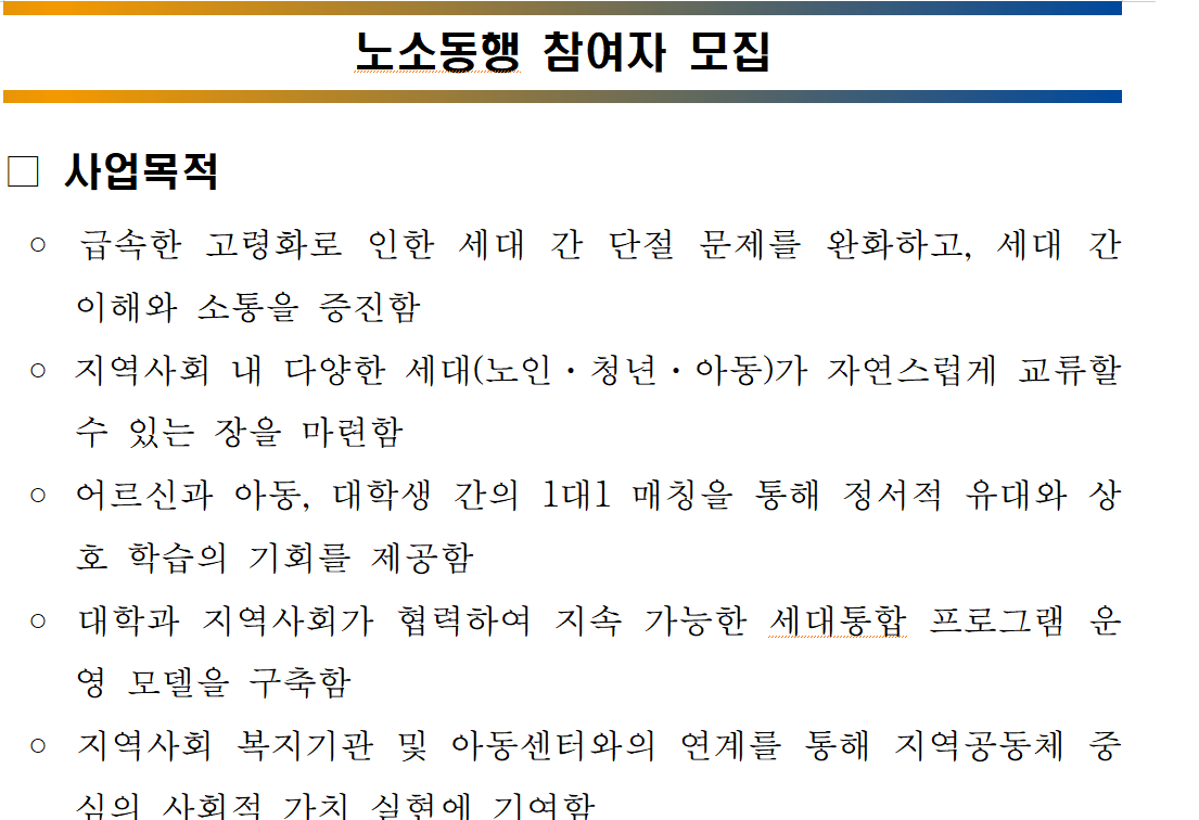 아래와 같이 배재대학교에서 주관하는 지역혁신중심 대학지원체계(RISE) 1차년도 대전형 공유대학 특화 비교과 프로그램을 원활하게 운영하기 위해 참여대학 학생을 대상으로 노소동행 참여자를 모집하오니, 관심있는 학생의 많은 신청 부탁드립니다.
