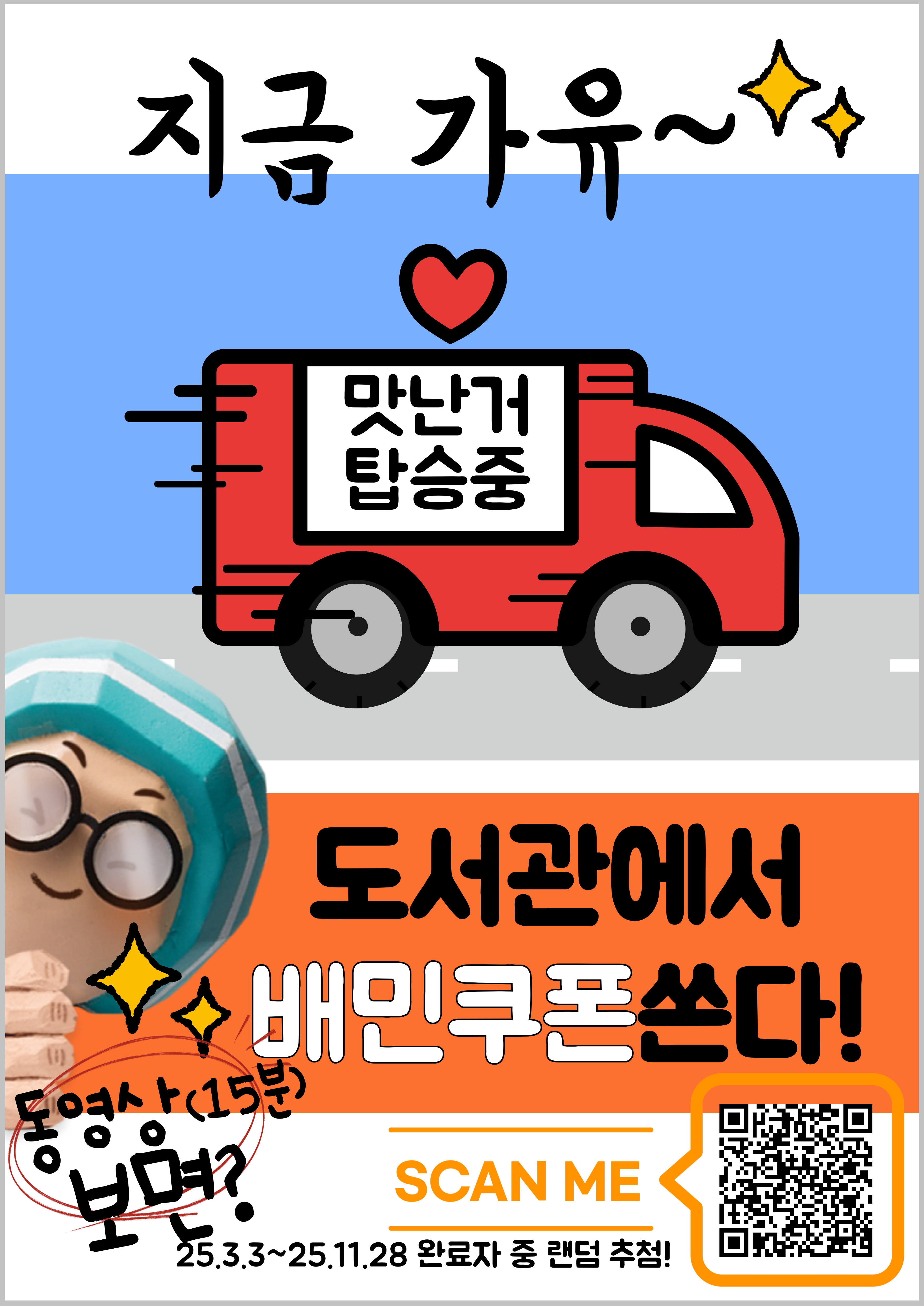 | [학술정보관] 도서관 온라인 이용교육 듣고 배민쿠폰 받자!(~11월28일까지) | ||