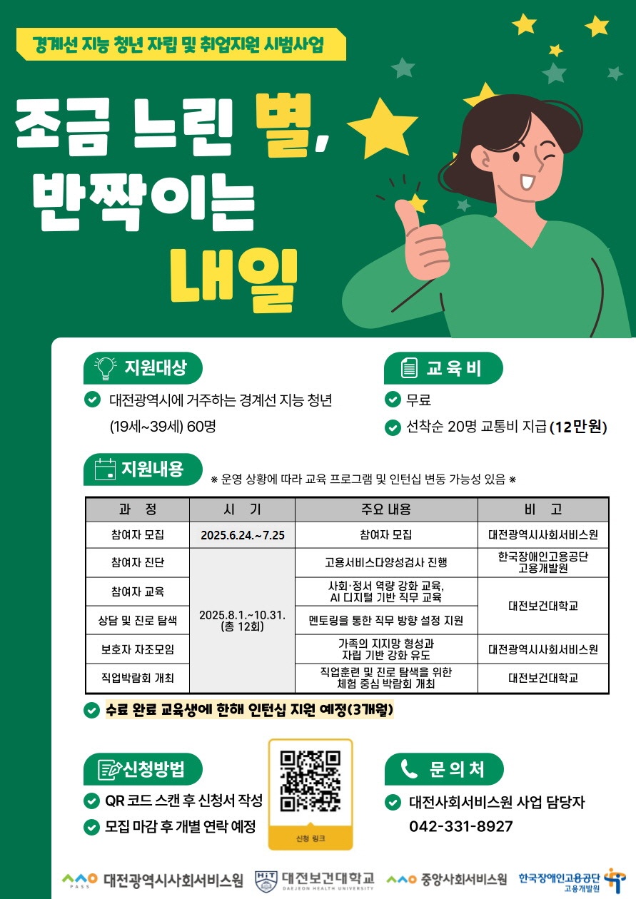 저희 통합 늘·돌봄 센터에서는 글로컬대학30사업의 일환으로, 대전광역시사회서비스원과 공동으로 주관하는 '경계선 지능인 역량강화 프로그램'을