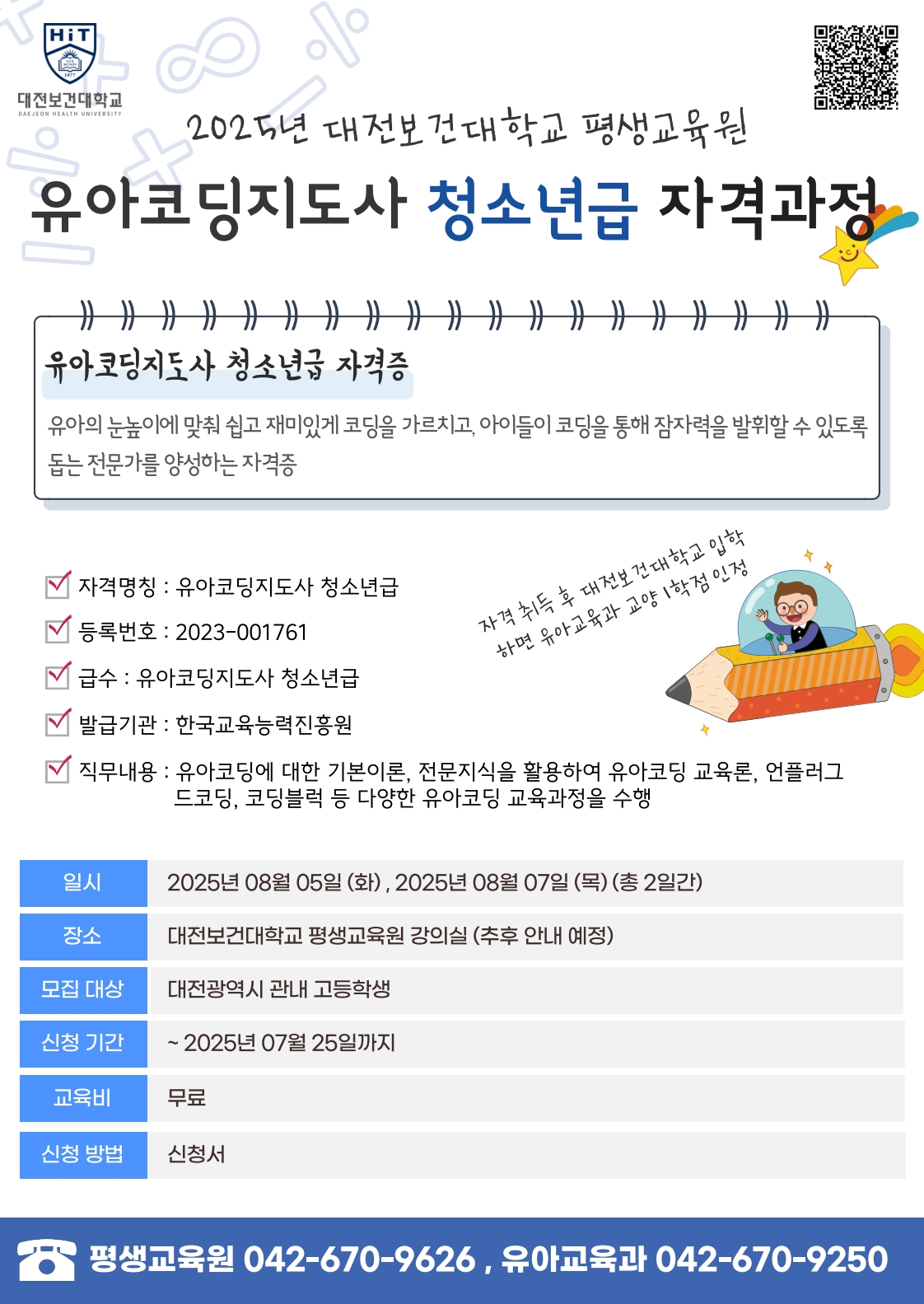 | [평생교육원] 유아코딩지도사 청소년급 자격과정 참여자 모집 안내 | ||