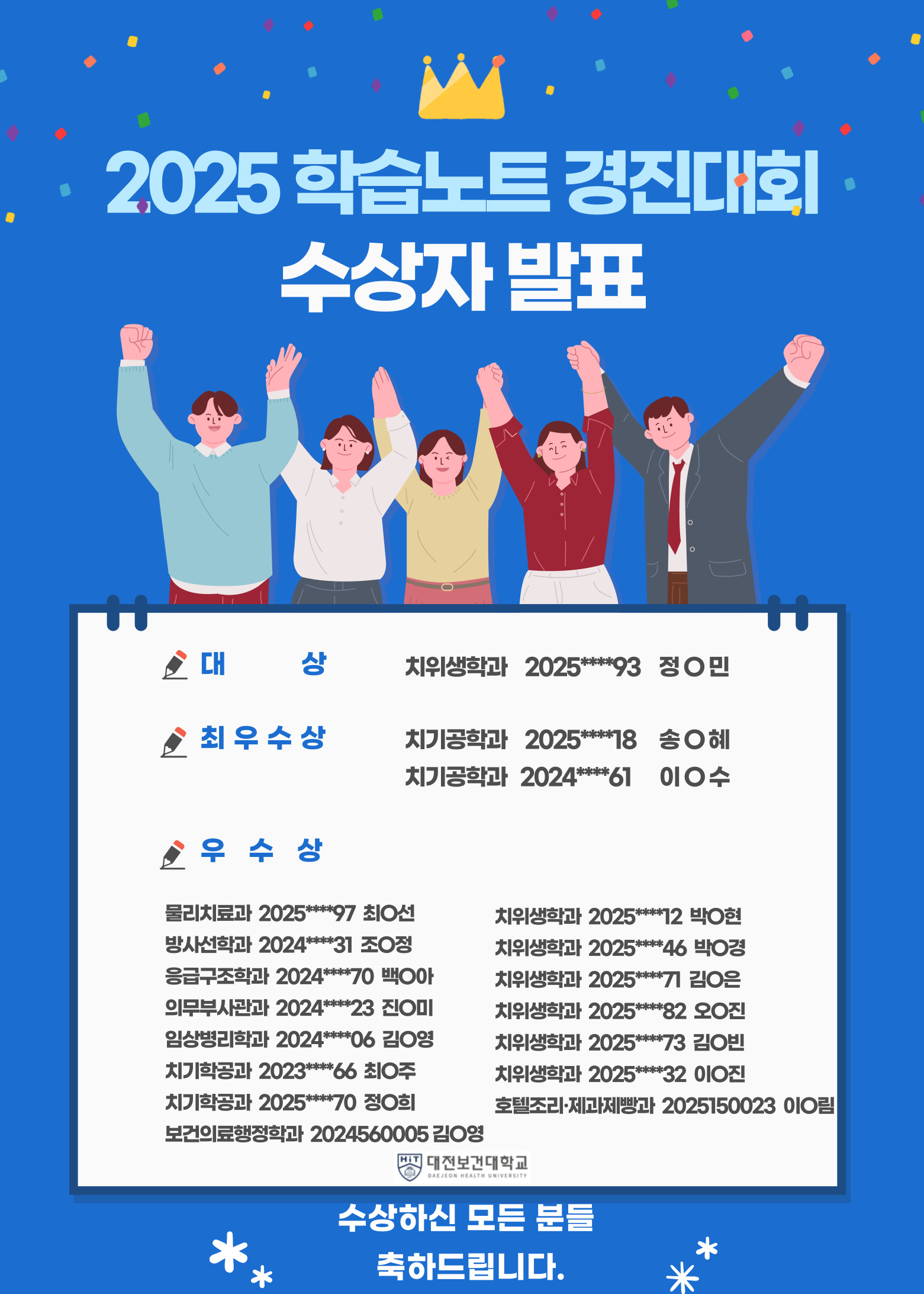 수상하신 모든 학생들 축하드리며, 참여해주신 학생분들에게도 감사드립니다.