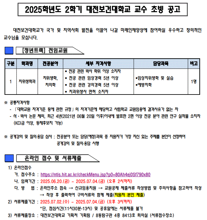 - 01._2025학년도_2학기_대전보건대학교_교수_초빙_공고.pdf (191.6 KB)