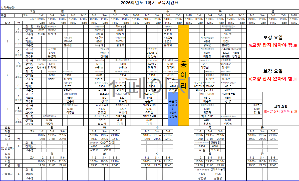 View 2026학년도 1학기 교육시간표 작성자 담당자 작성일 26/03/03 (16:22) 조회수 46 2026학년도 1학기 교육시간표 공지해드립니다. 교육시간표_공지용.PNG (99.0 KB) 목록으로