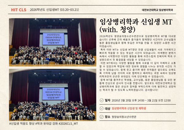 ♠ 학생 반응“유충헌 교수님과 함께하니 더 실감 나고 재미있었어요!”“미래에 나도 임상병리사로서 환자를 돕고 싶다!”"이재호선생님, 감사합니다. 최고!!!!"임상병리학과에서 경험할 수 있는 것들책 속 지식 ✅ + 학교 실습 ✅ + 현장 중심형 체험 ✅꿈을 현실로 만드는 진짜 교육