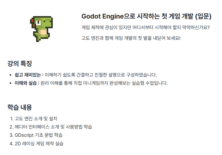 Godot Engine, GDScript, 게임개발을 쉽게 배울 수 있는 무료 강의가 있어 안내드립니다.