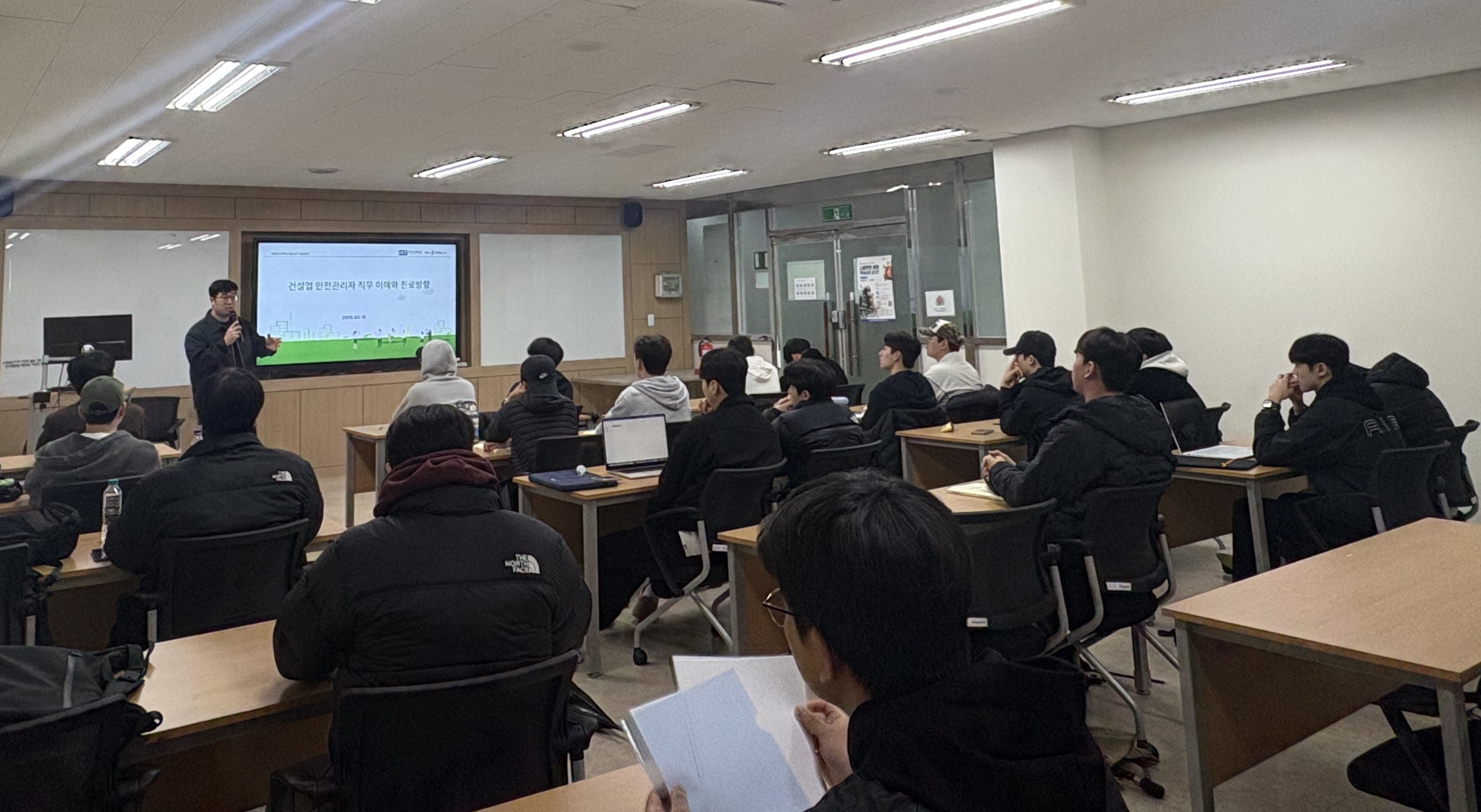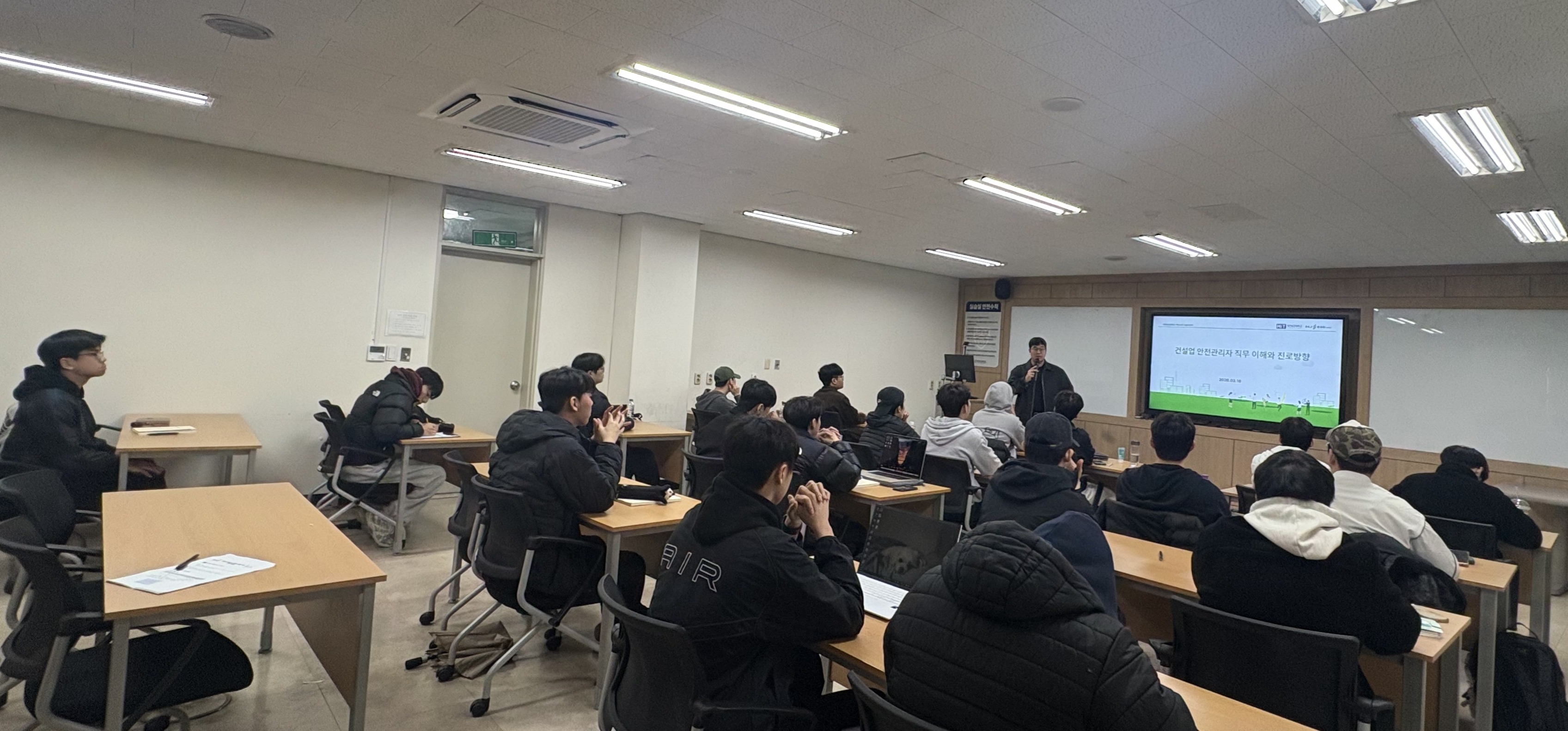 1학년을 대상으로 건설업 안전관리자 직무 이해와 진로 방향 관련 특강을 진행하였습니다.