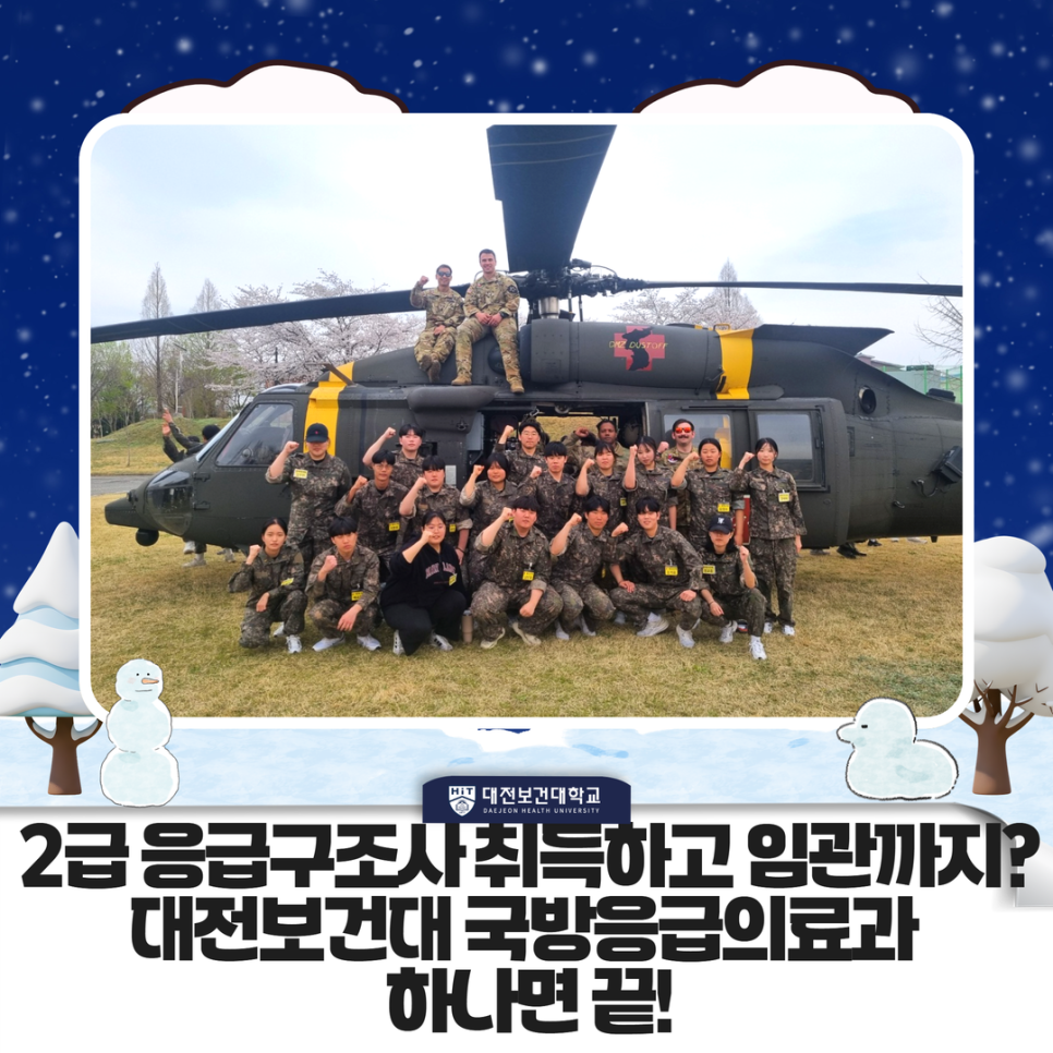 안녕하세요~ 대전보건대학교 공식 불로그입니다! 수험생 여러분~ 취업난 속에서 '안정적인 직장'과 '가치 있는 일', 이 두 마리 토끼를 다 잡고 싶어 고민 많으시죠? 오늘은 그런 고민을 한 방에 해결해 줄 수 있는 곳, 대전보건대학교 국방응급의료과를 소개해 드리려고 해요! 단순히 군대를 가는 곳이 아닙니다. 국군장병의 생명을 지키는 영웅이자, 당당한 국가공무원으로 거듭나는 길! 지금부터 그 특별한 매력을 파헤쳐 볼게요! 1️⃣ 왜 '국방응급의료과'여야 할까요? (feat. 육군 협약의 힘!) 대전보건대 국방응급의료과는 육군과 공식 협약을 체결한 학과예요. 이게 왜 중요하냐고요? 바로 남다른 혜.......