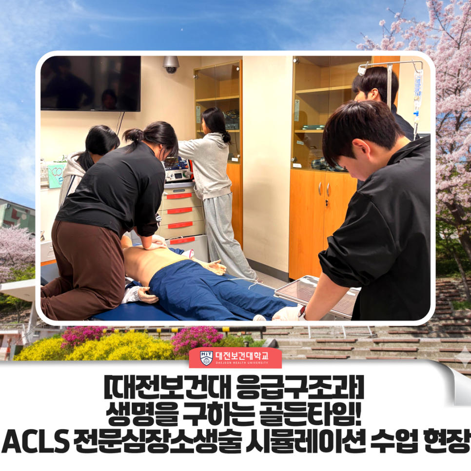 안녕하세요! 대전보건대학교 공식 블로그입니다. 저는 '보건이'고요~ 따뜻한 봄바람이 부는 캠퍼스지만, 이곳만큼은 한여름보다 뜨거운 열기로 가득합니다! 바로 우리 대전보건대학교 응급구조과의 실습실인데요. 오늘은 예비 응급구조사들이 실무 역량을 키우는 꽃, 'ACLS(전문심장소생술) 시뮬레이션 수업' 현장을 생생하게 소개해 드리려고 합니다. ACLS란 무엇인가요? ACLS(Advanced Cardiovascular Life Support)는 '전문심장소생술'을 뜻합니다. 일반인이 하는 기본 심폐소생술(BLS)에서 한 단계 더 나아가, 전문 의료진이나 응급구조사가 병원 전 단계 혹은 병원 내에서 시행하는 고난도 응급처치 과.......
