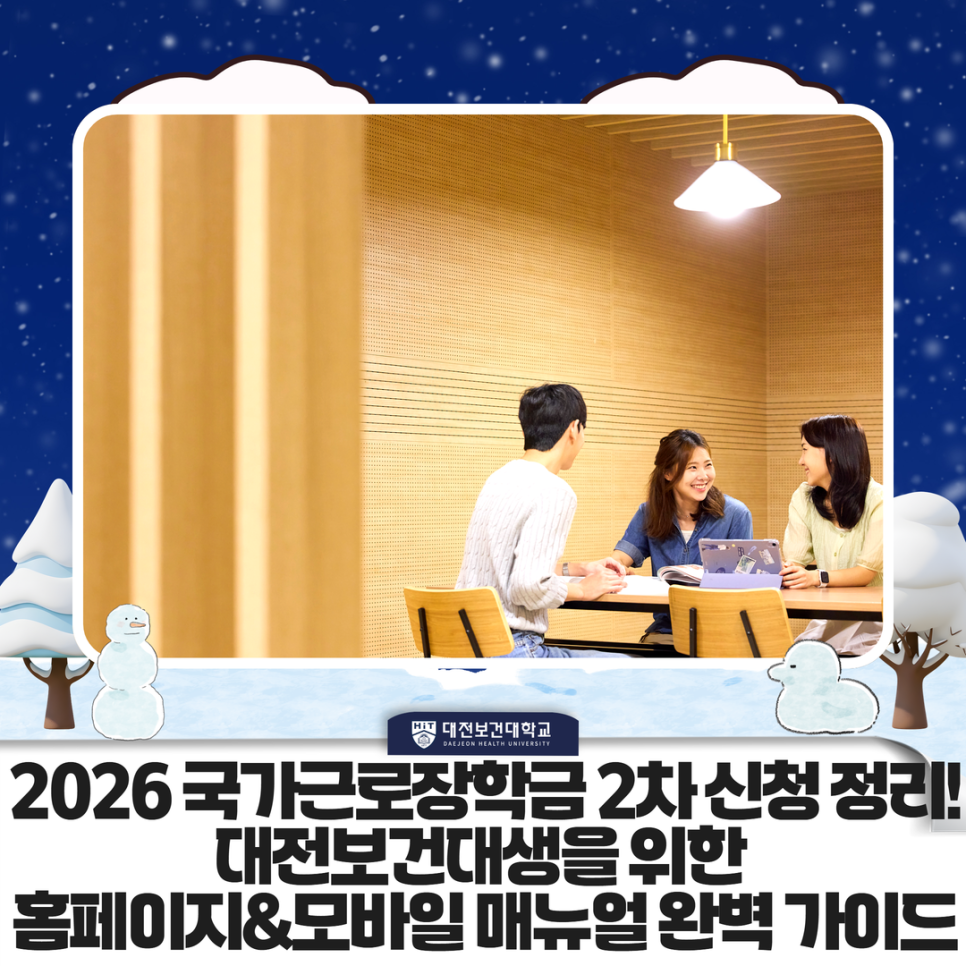 안녕하세요, 대전보건대학교(HIT) 공식 블로그입니다! 우리 히트(HIT)인들의 주머니 사정을 든든하게 채워줄 '2026년 1학기 국가근로장학금 2차 신청' 소식을 들고 왔습니다! "근로장학금이 뭐야? 그냥 알바 아냐?"라고 생각한다면 오산! 전공 관련 실무도 익히고 학비 부담도 줄일 수 있는 대학 생활 최고의 스펙이자 꿀팁이죠. 특히 우리 대전보건대처럼 실무 중심의 학과가 많은 곳에서는 교내·외 근로지가 여러분의 소중한 '현장 경험'이 되기도 한답니다. 지금부터 신청 방법부터 기간까지 하나하나 짚어드릴게요! 놓치면 후회하는 핵심 일정! (꼭 체크하세요!) (신청기간) 2026. 2. 3.(화) 09:00 ~.......