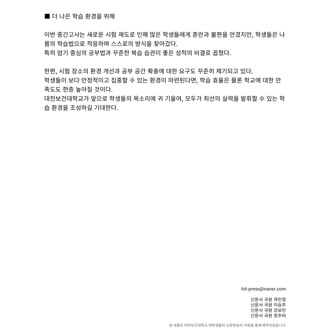 대전보건대학교 2학기 중간고사, 학생들의 목소리를 듣다