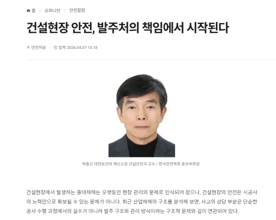 박종근 교수님 - "건설현장 안전, 발주처의 책임에서 시작된다" 기고문