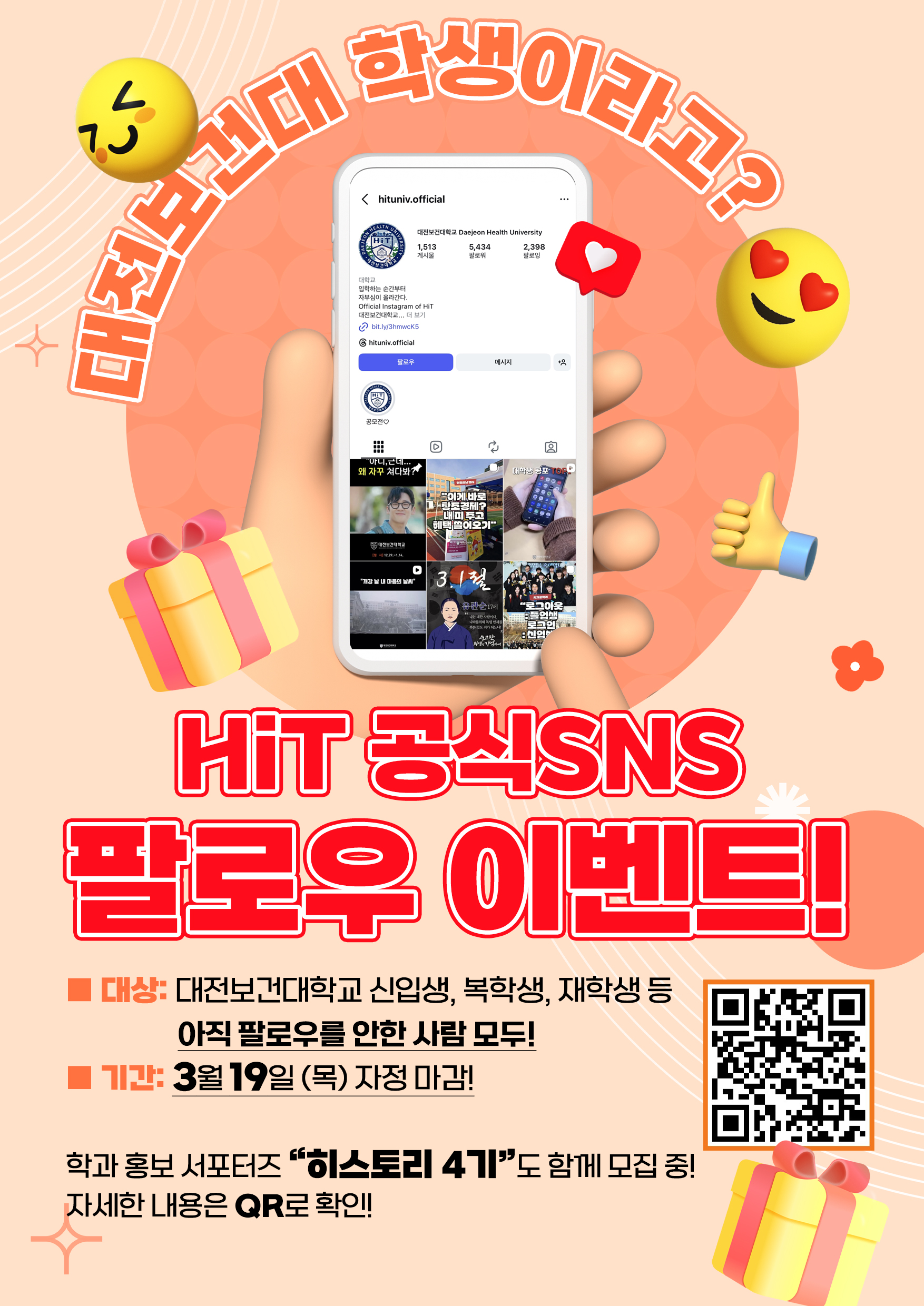 | 2026년 대전보건대학교 학과 홍보 서포터즈 "히스토리 4기" 모집 및 SNS 구독 이벤트 | ||